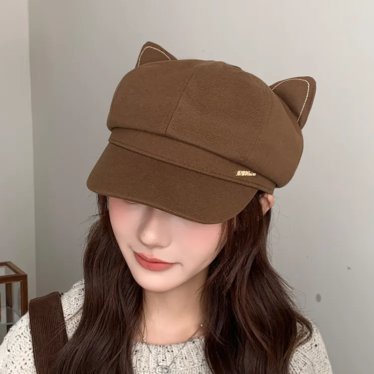 Бежевый, кошка, ухо, буква, восьмиугольная кепка