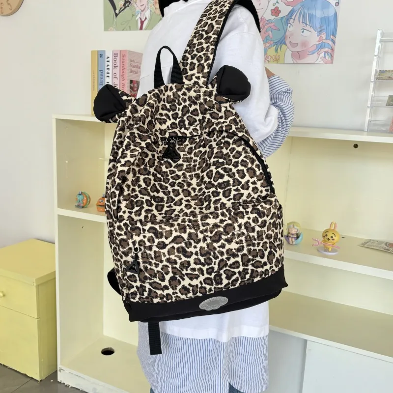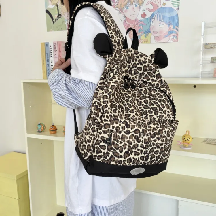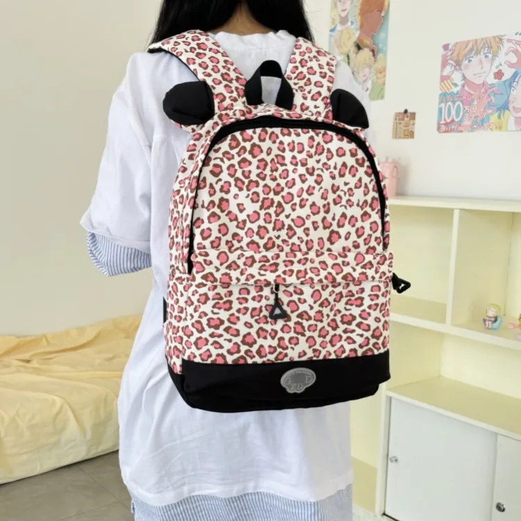 AIBAG Нейлон Рюкзак Женские Colorful Paw Принт Розовый леопардовый принт Корова Принт Коричневый леопардовый принт