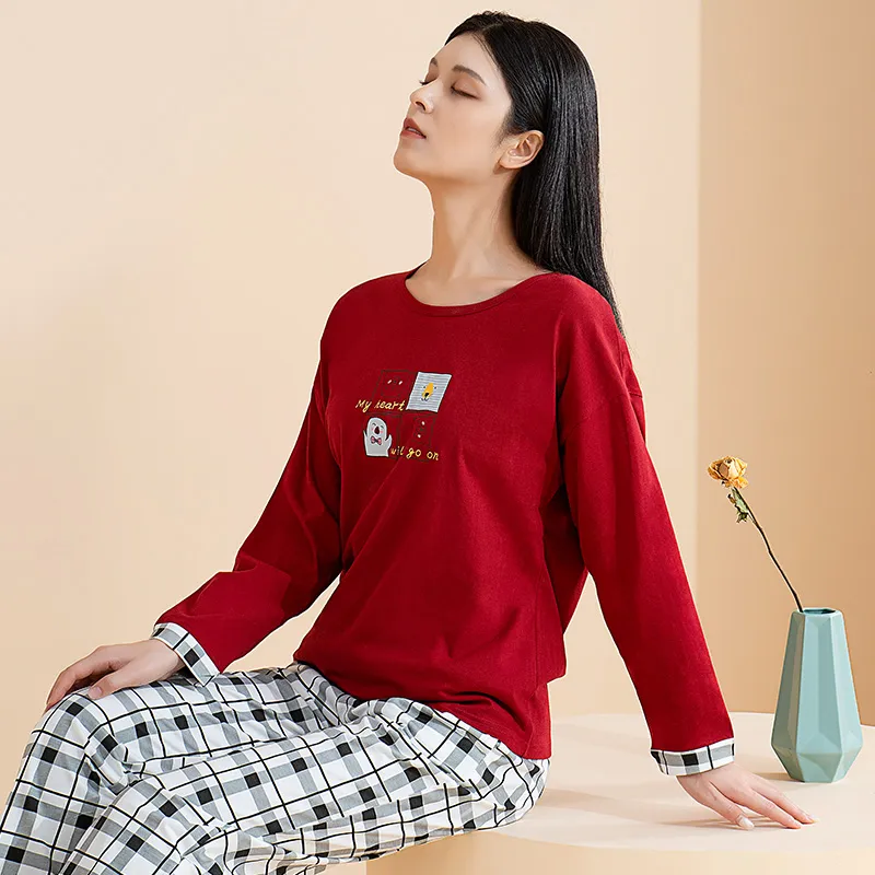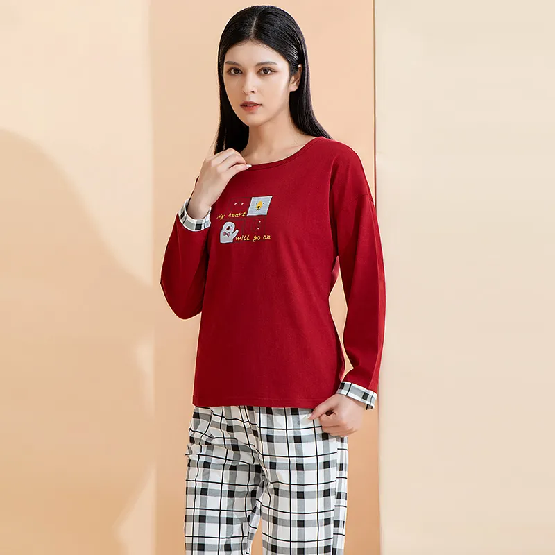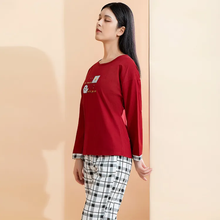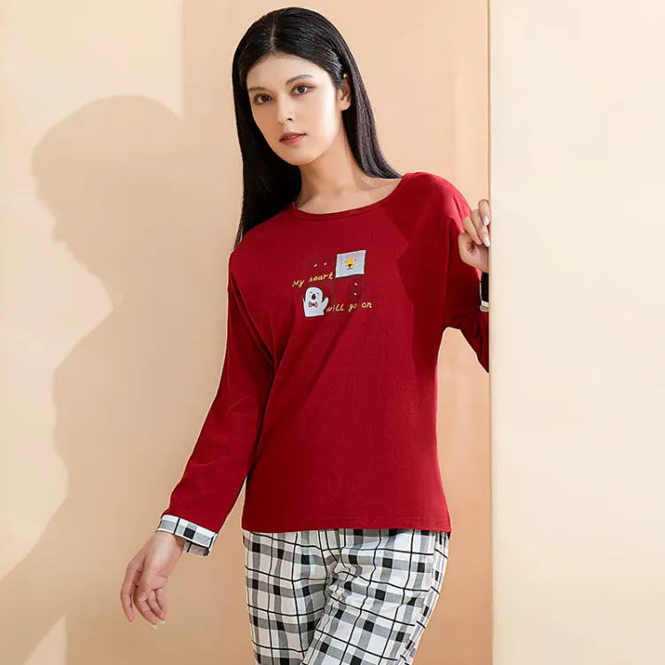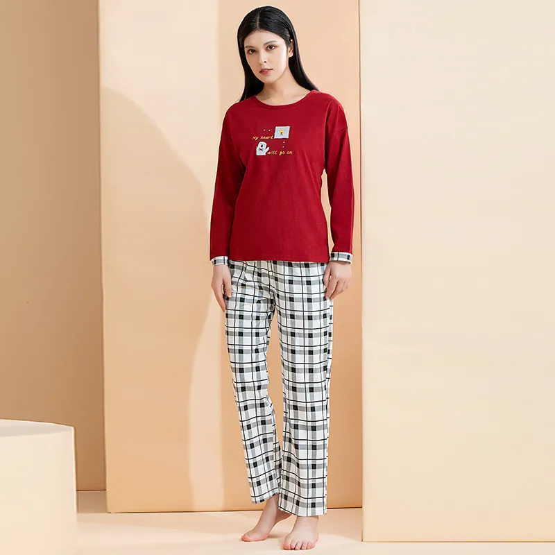 AIDI Бургунди + Черный Белый Женские Пижамные Комплекты