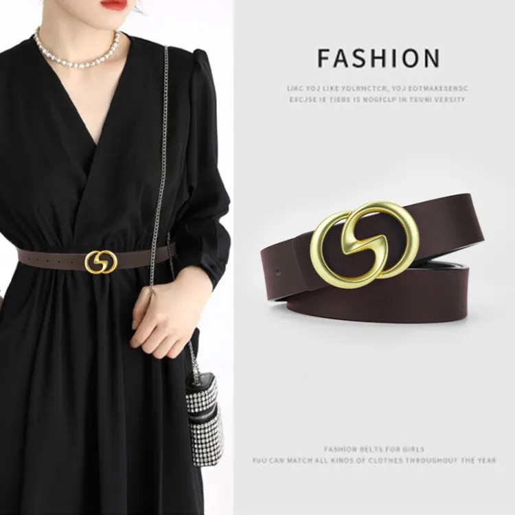 AIKEDAISHU Коровья кожа ремни женские черный кофейный 2,8 см