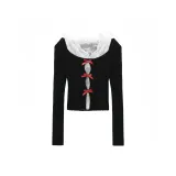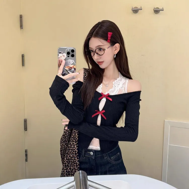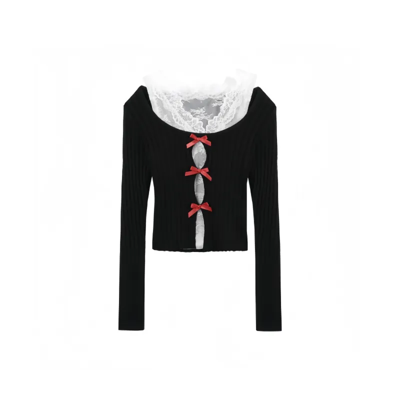 Aimilian Черный топ + Белый кружево Женская трикотаж
