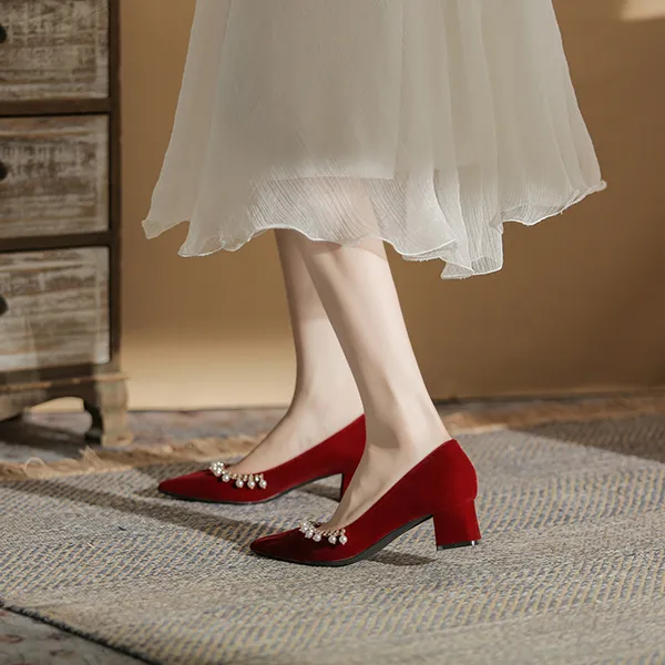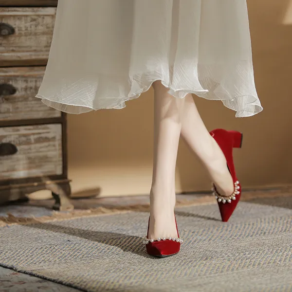 Ainer Кошка Грубый каблук Высокие каблуки 5 см Женские Красный