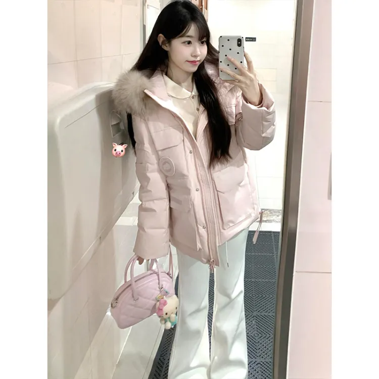 Цвет:Розовый хлопковый пуховик