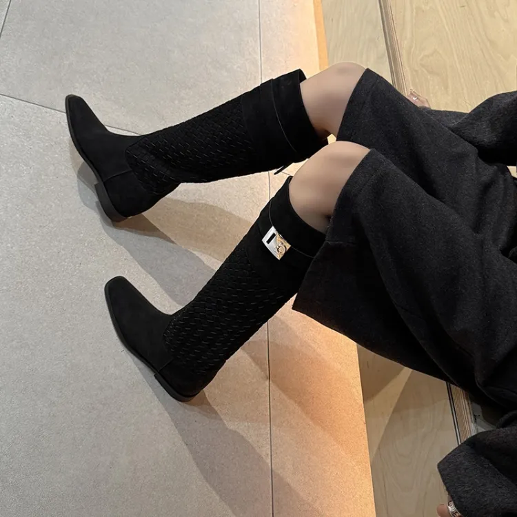AIQINISHA Колено Высокие сапоги 5,5 см Женские