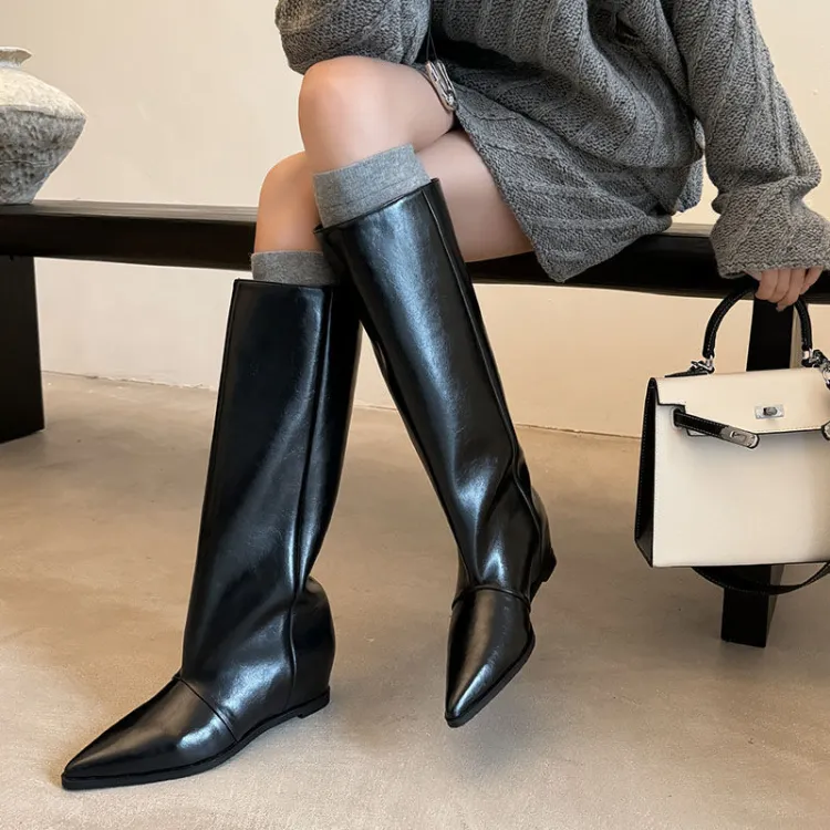 AIQINISHA Колено Высокие сапоги 5 см Женские