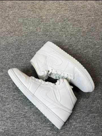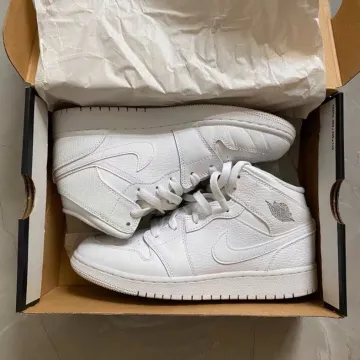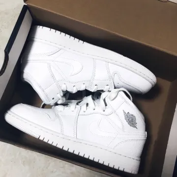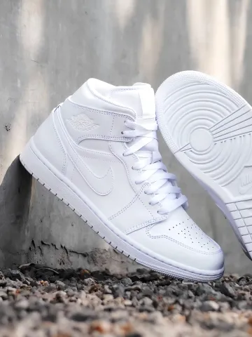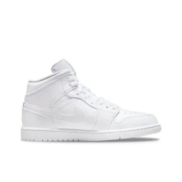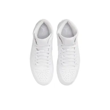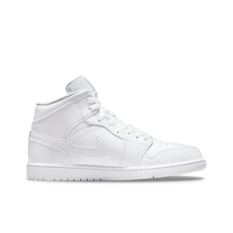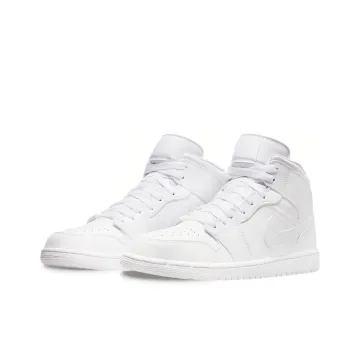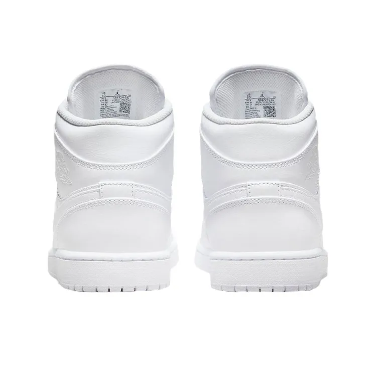 Jordan Air Jordan 1 MID 'Triple White' Кожа Амортизация Противоскользящий Устойчивый к истиранию MID Верх