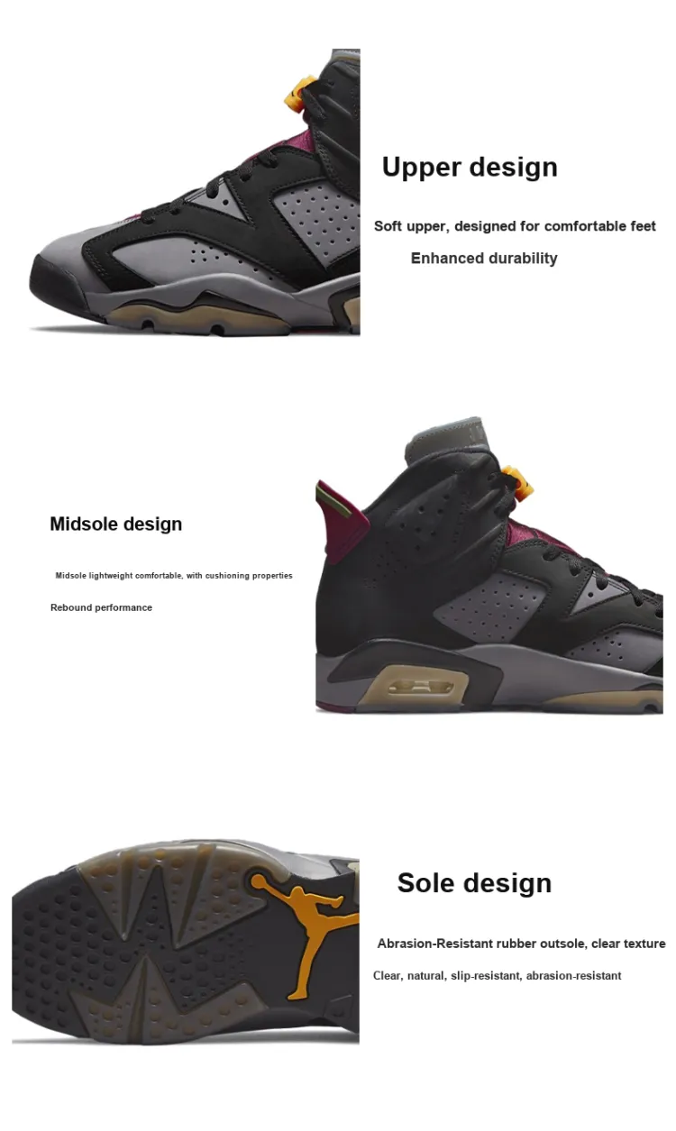 Jordan Air Jordan 6 Retro 'Бордо' MID Топ Винтажные баскетбольные кроссовки Мужской Серый Черный Фиолетовый