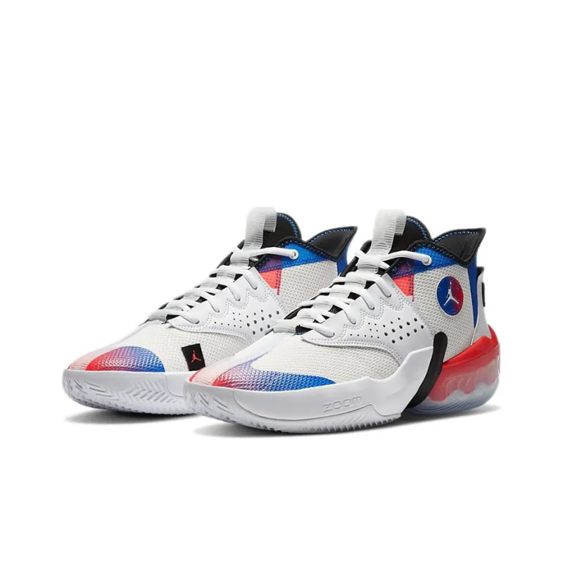 Джордан React Elevation PF Амортизаторы Устойчивая Низкая Баскетбольная Кроссовка Мужская Белая Синяя Красная Азиатская Версия