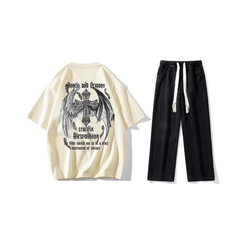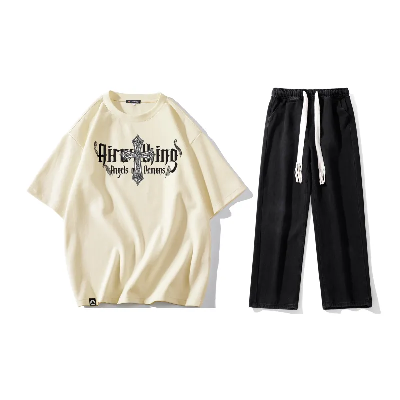 Комплект:Комплект (Абрикосовая футболка + черные джинсы)