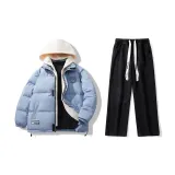 Комплект:Комплект (Haze Синий пуховик + Черные джинсы)