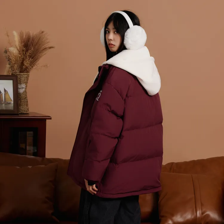 Комплект (Бордовый пуховик + Черные джинсы)