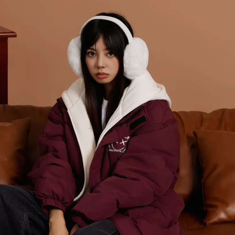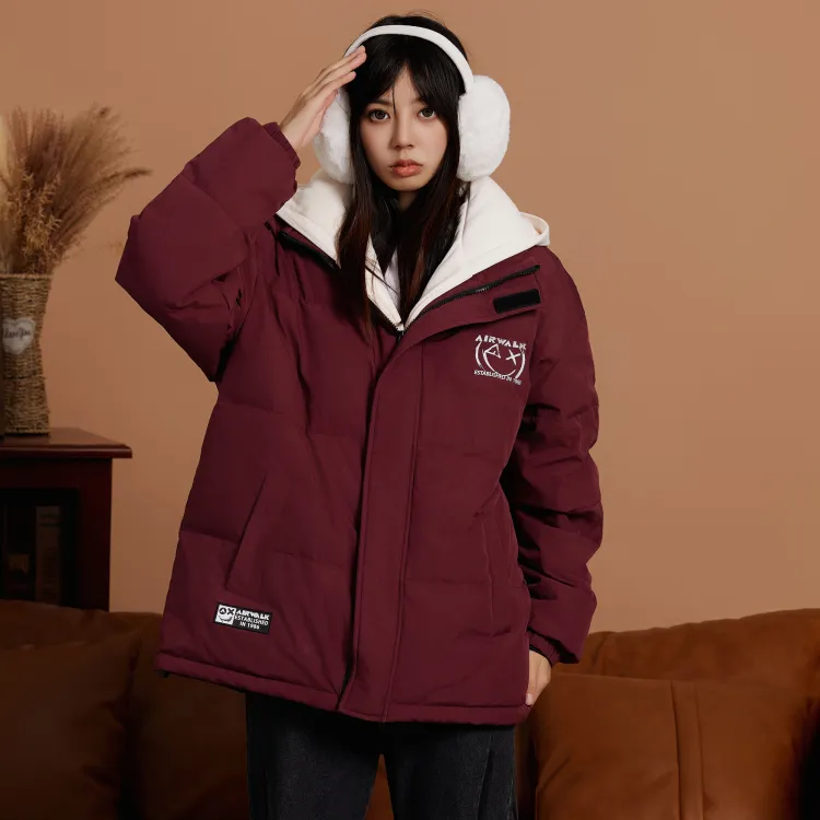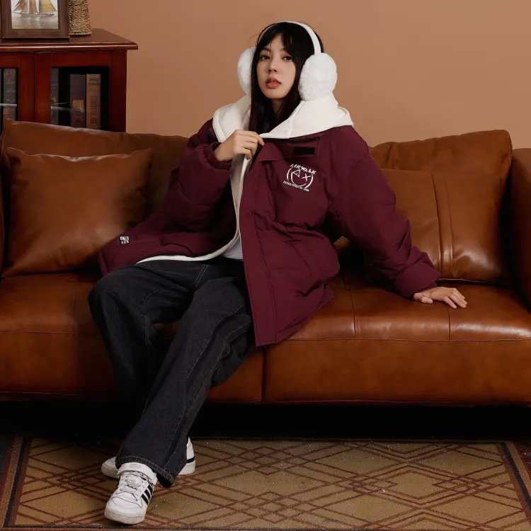 Set (Бургунди Down Jacket + Винтажные Синие Джинсы)
