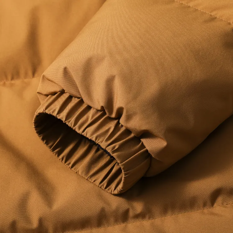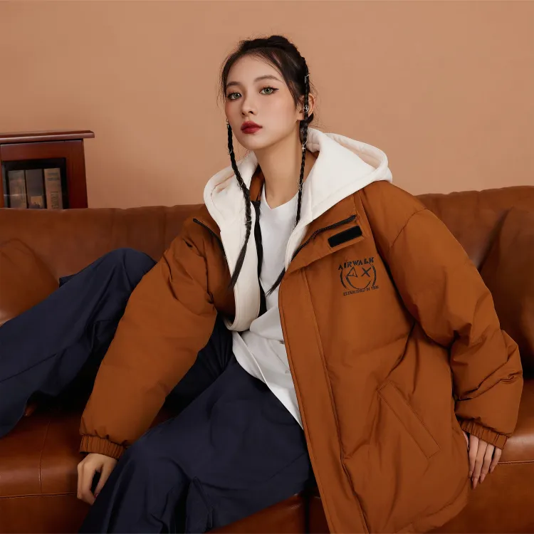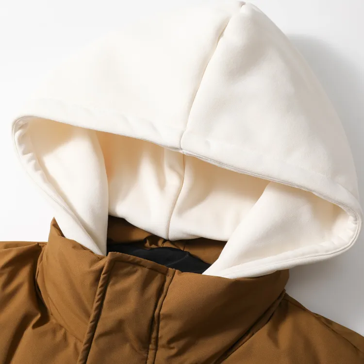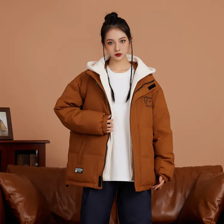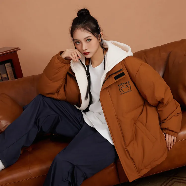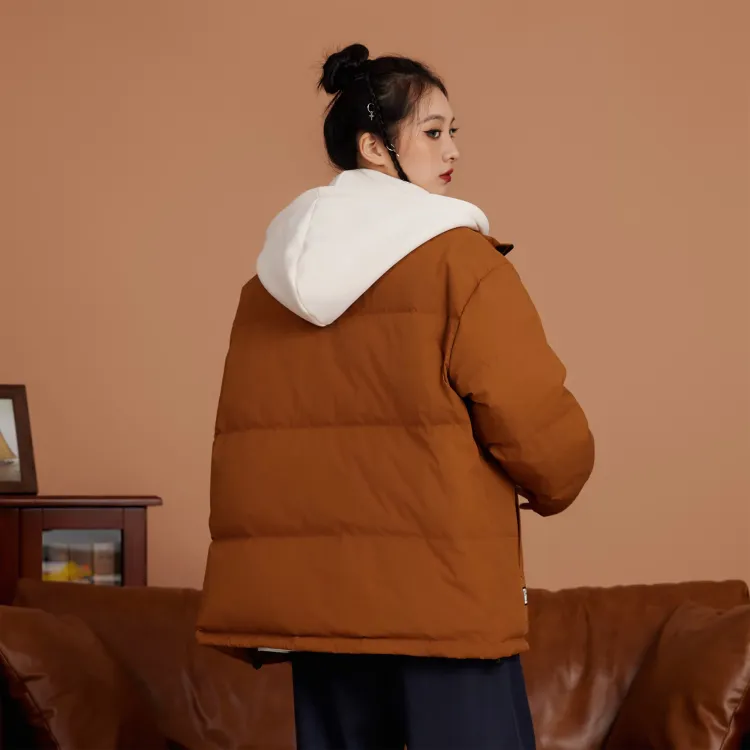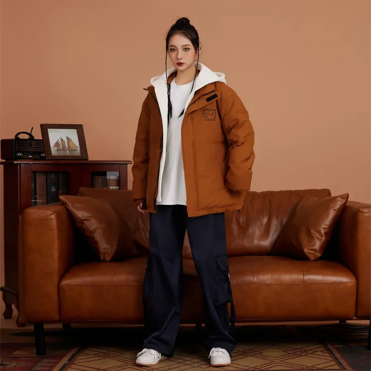 Set (Кофейный пуховик + Светло-синие джинсовые штаны)