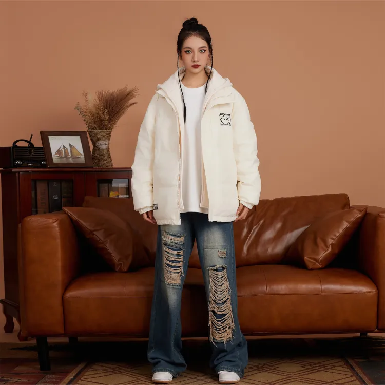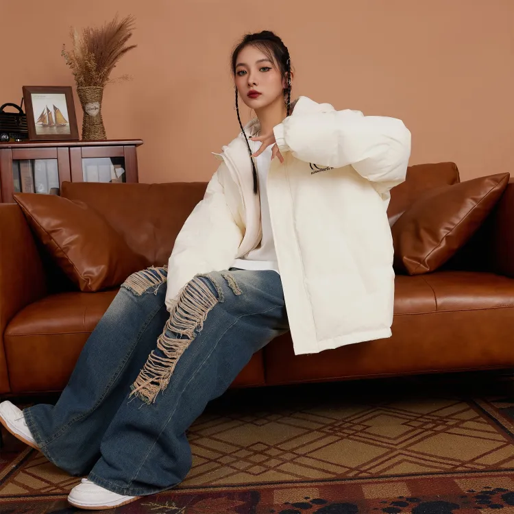 Set (Ecru Down Jacket + Light Blue Denim Pants)