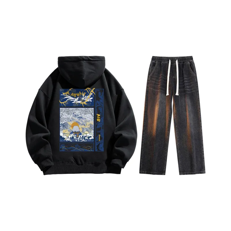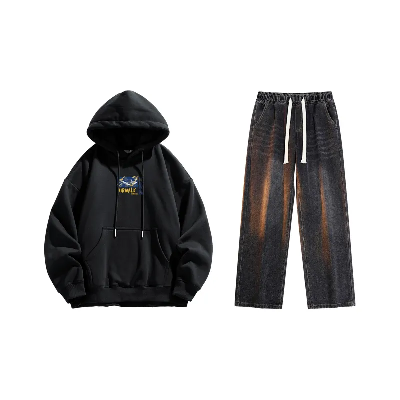 Комплект (Черный с флисовой подкладкой + Ностальгический синий джинсы)