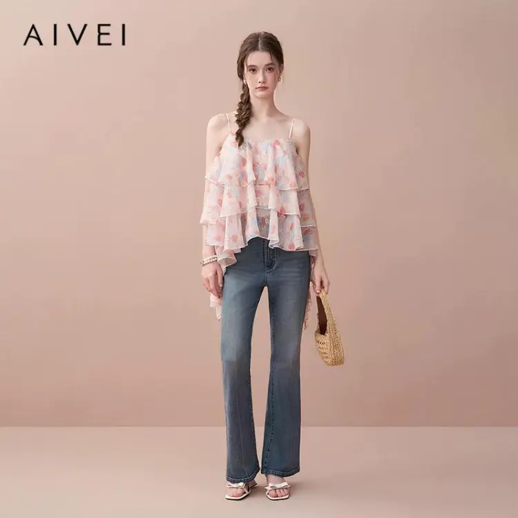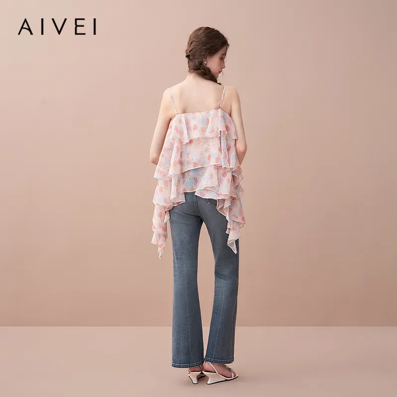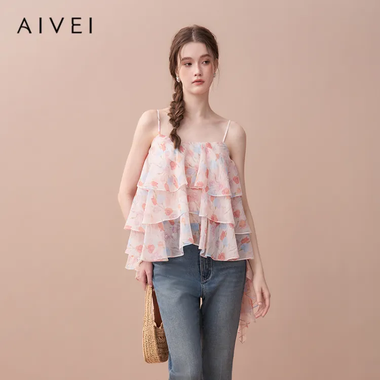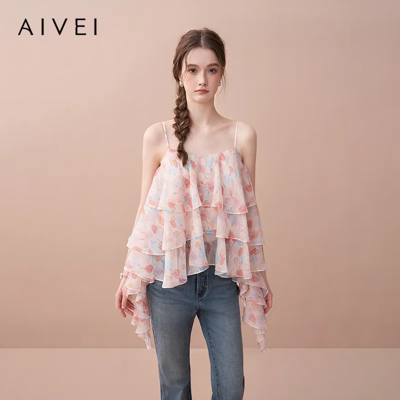 AIVEI Оранжево-розовый Цветение Женские Топы
