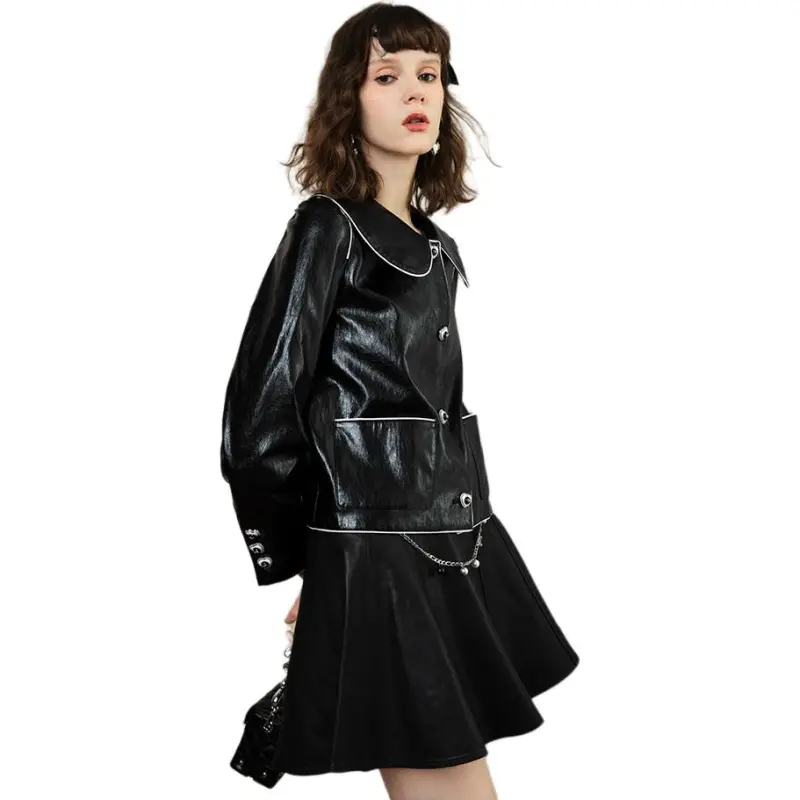 AIVEI Кожа Куртка Женская Черная