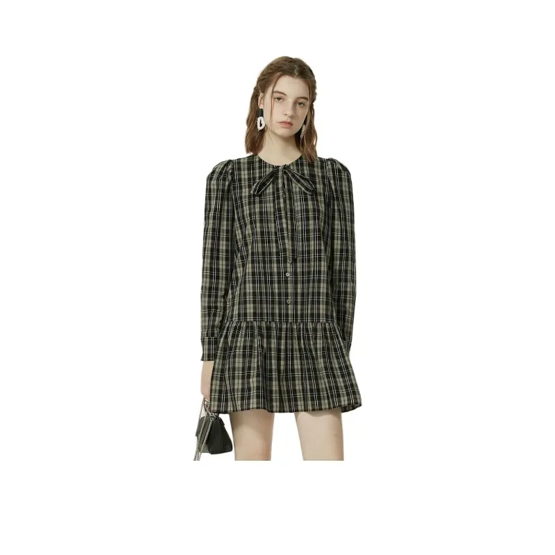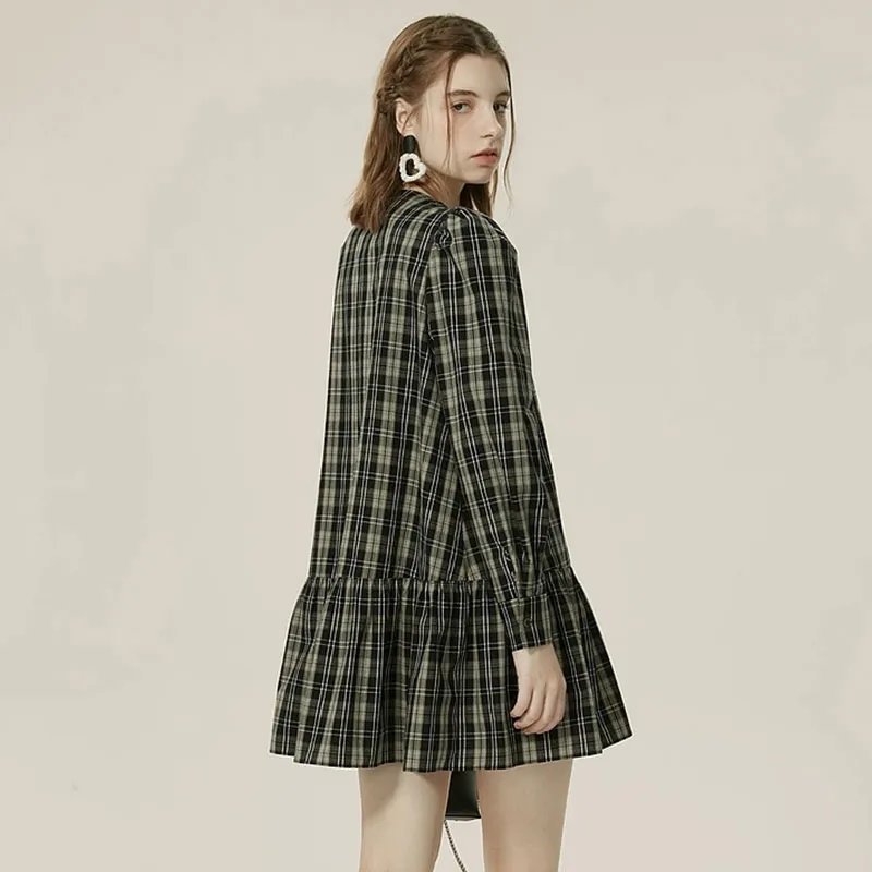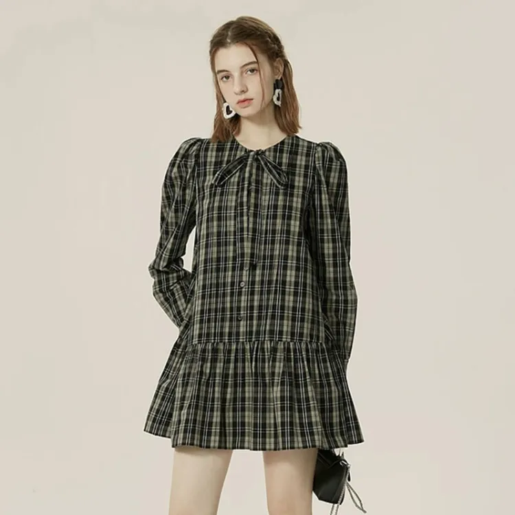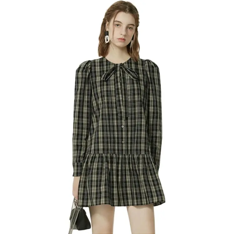 AIVEI Длинное платье с длинными рукавами женское черно-белая клетка