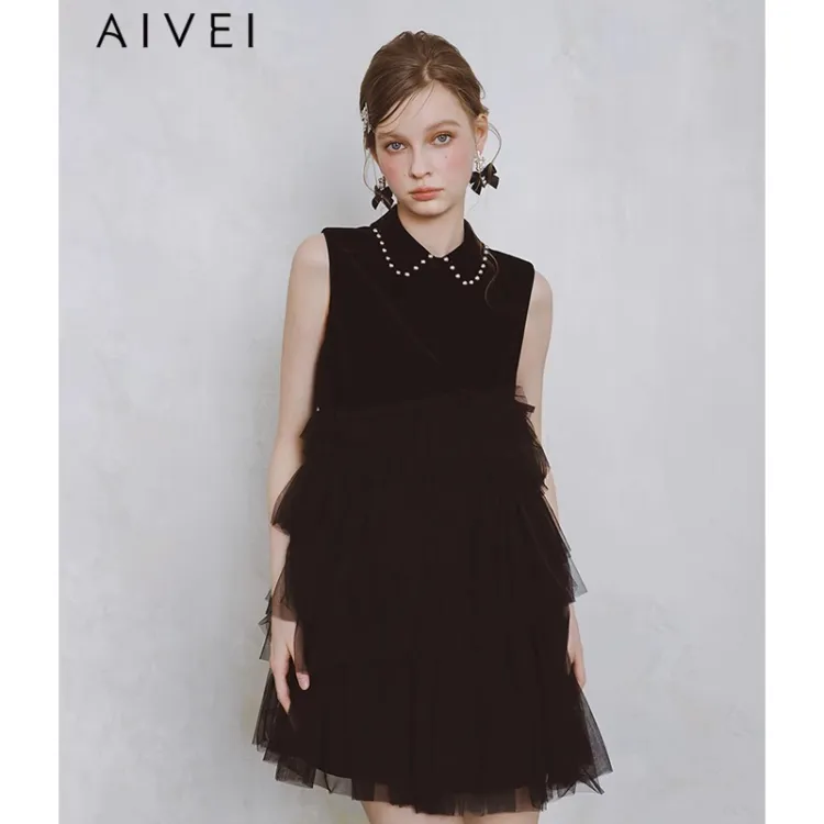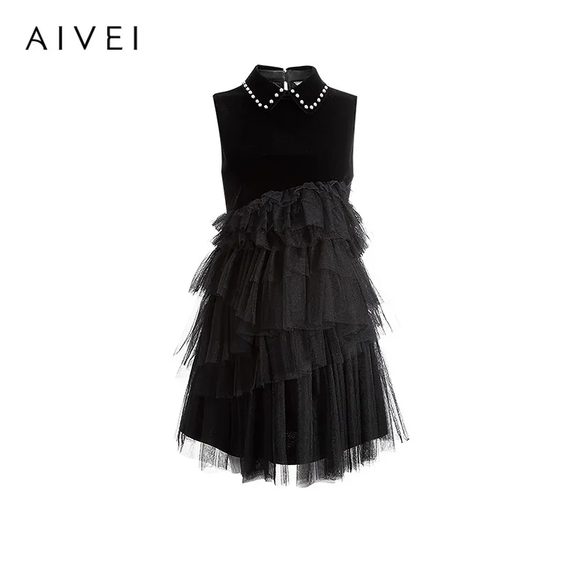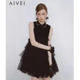 AIVEI Без рукавов Платье Женское Черное