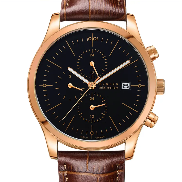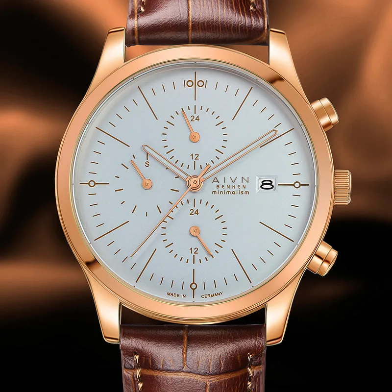 AIVN BENKEN Cronos Collection Кварцевый механизм Естественная кожа Ремешок Часы Мужские Многоцветный циферблат часов