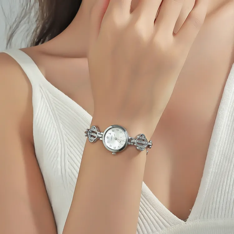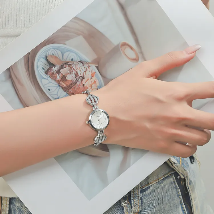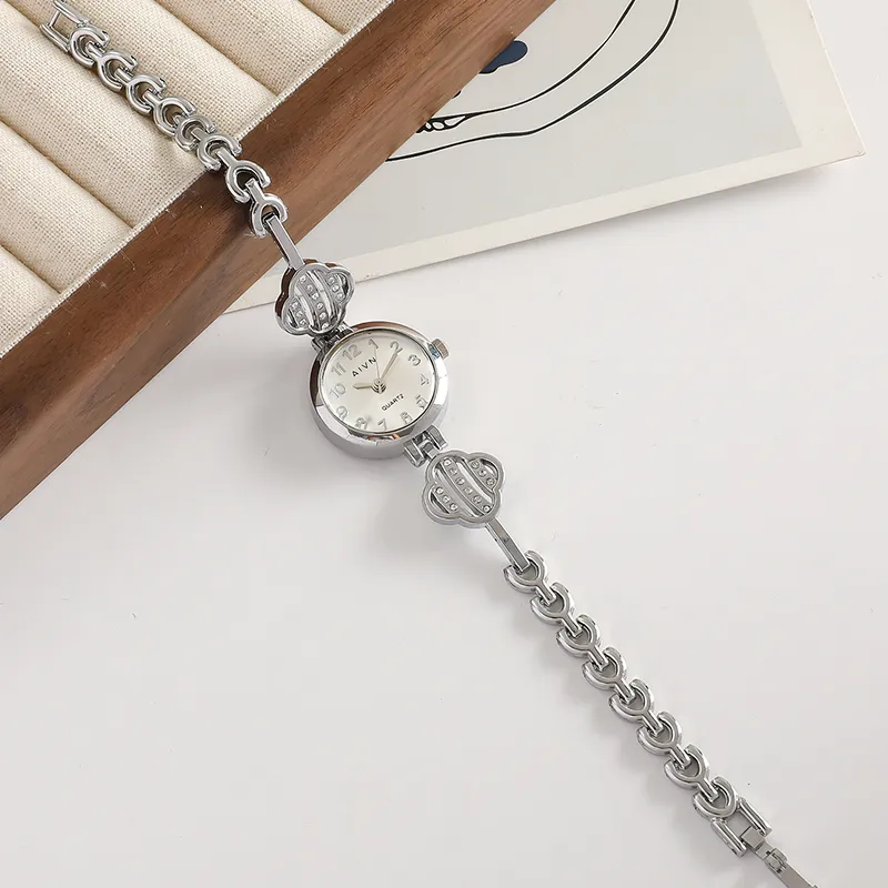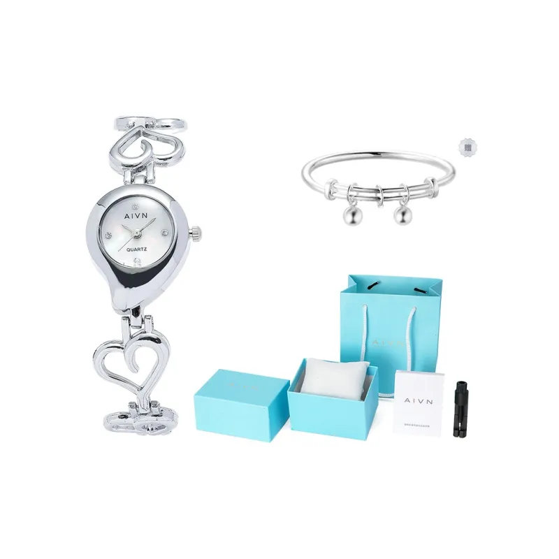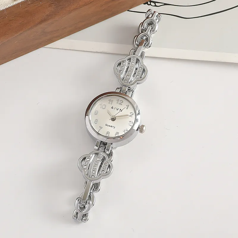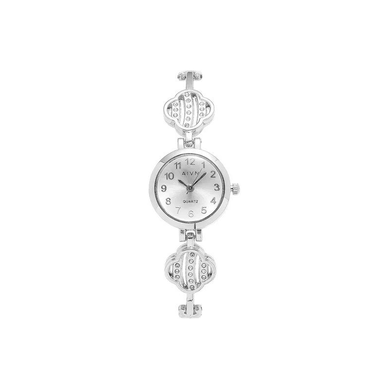 AIVN Four Leaf Clover Браслет Часы Кварцевый механизм Сплав Ремешок Часы Женские Часы Серебристый циферблат