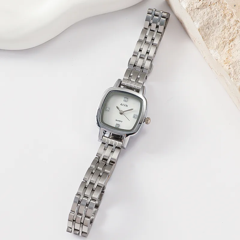 AIVN Кварцевый механизм сплав ремешок женские часы белый циферблат