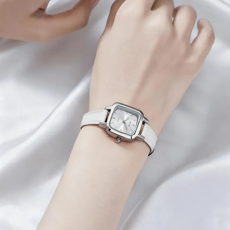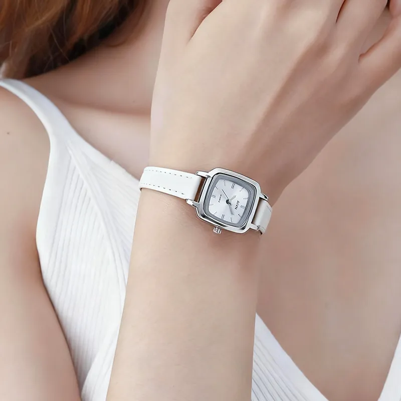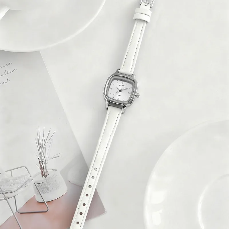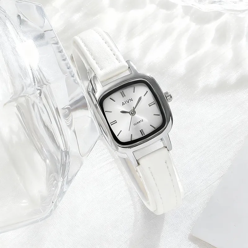 AIVN Кварцевый механизм натуральная кожа ремешок женские часы серебристый циферблат