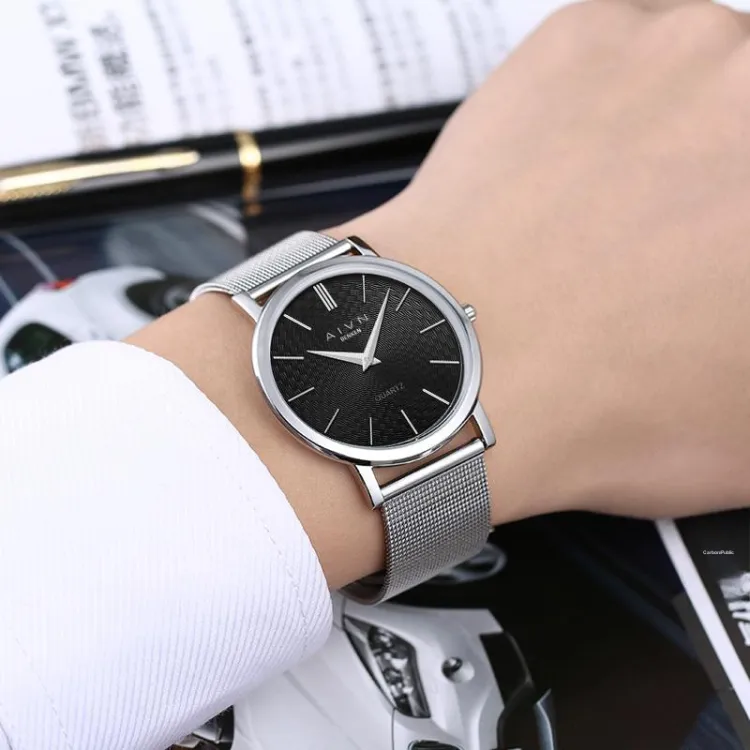 AIVN Trendy Fashion Collection Кварцевый механизм Стальной ремешок Часы Мужские Черный циферблат