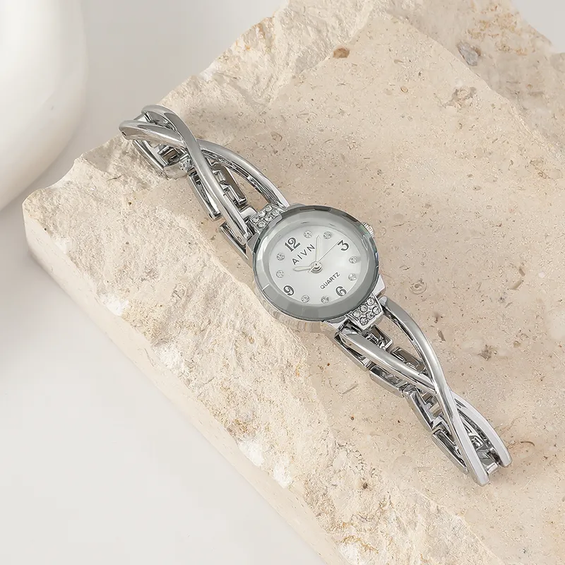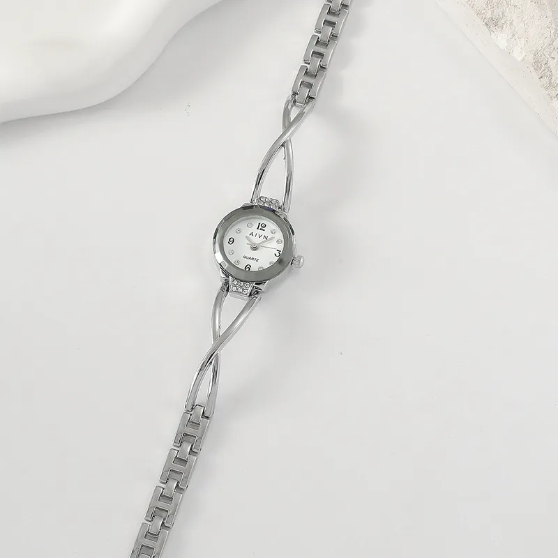 AIVN Утончённый Женский Delicate Круглый Кварцевый Механизм Сплав Ремешок Часы Женский Циферблат Белый
