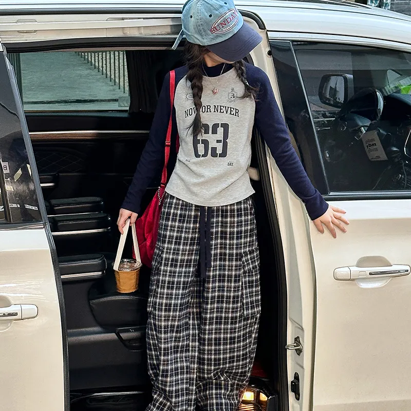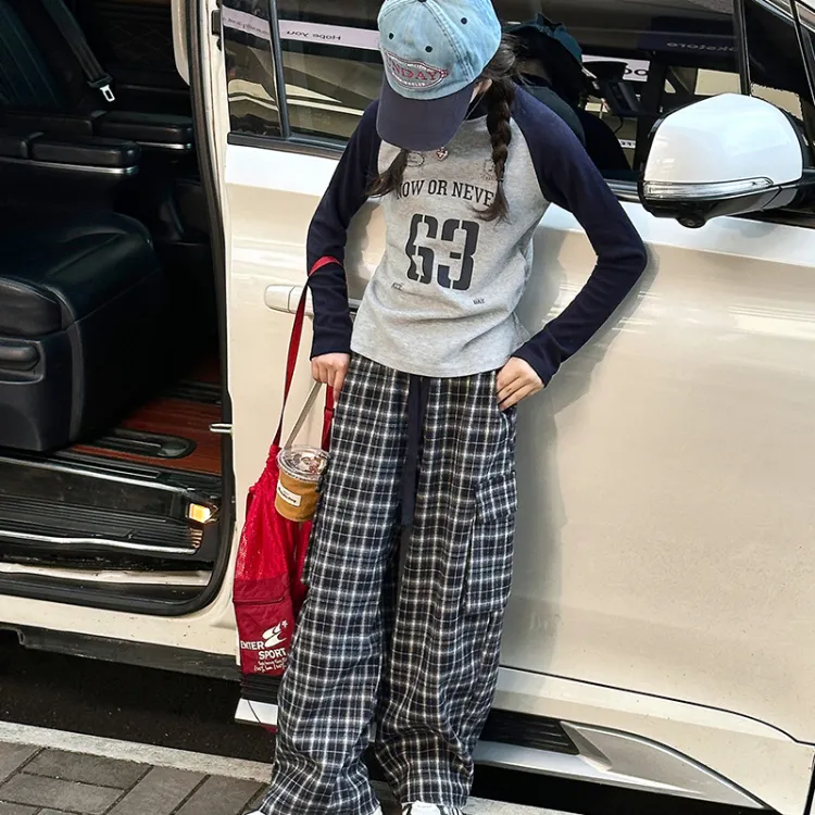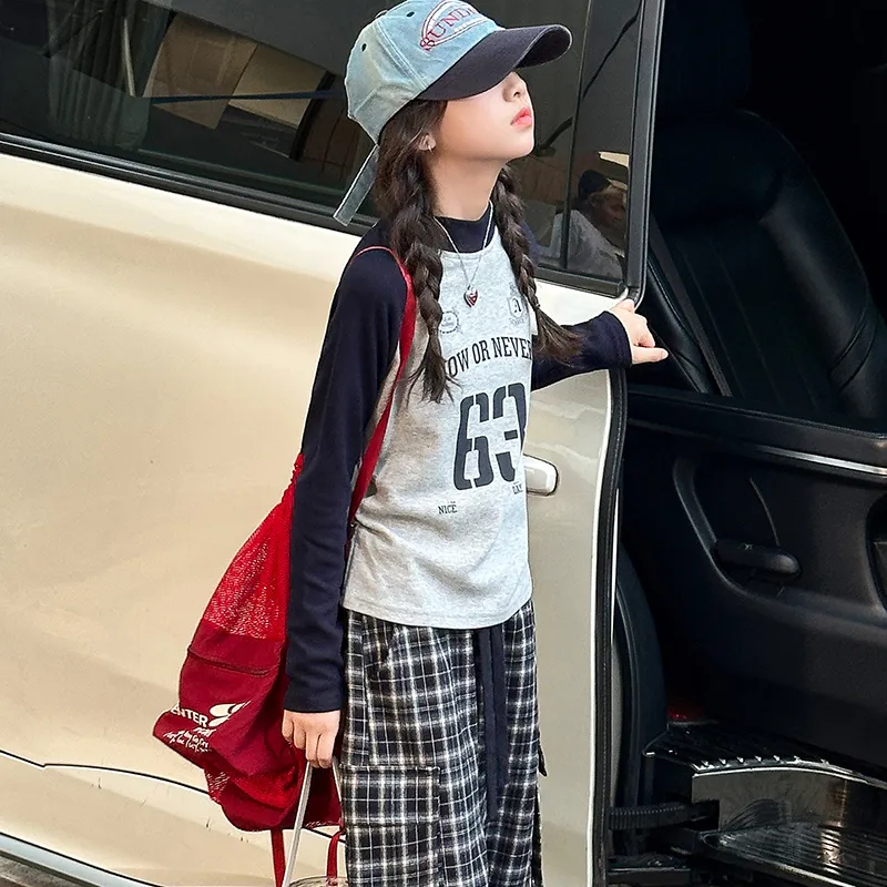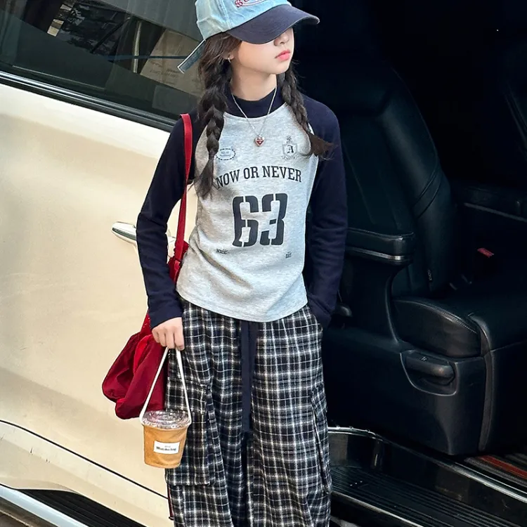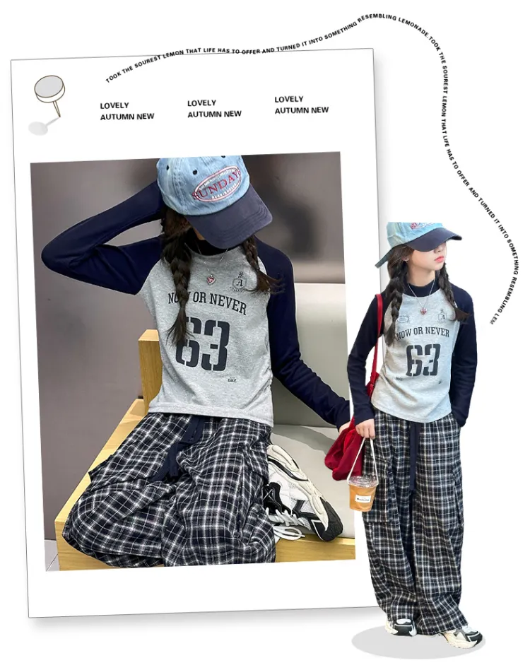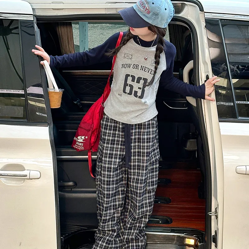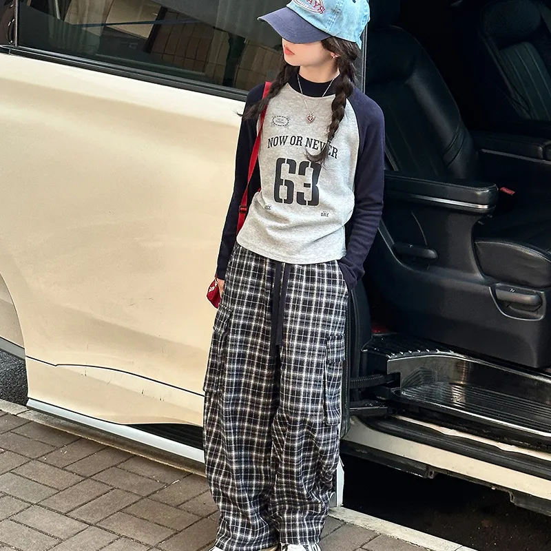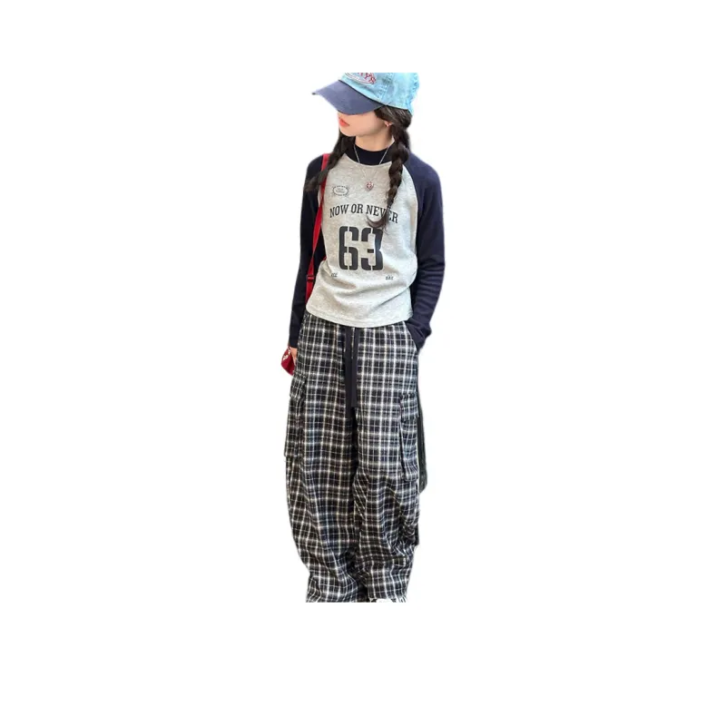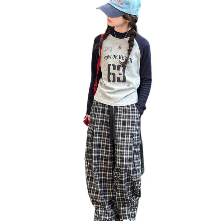 AIXINA Комплект одежды Серый топ + Клетчатые штаны Школьная повседневная спортивная одежда
