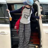 Цвет:Комплект одежды (Серый топ + Клетчатые штаны)