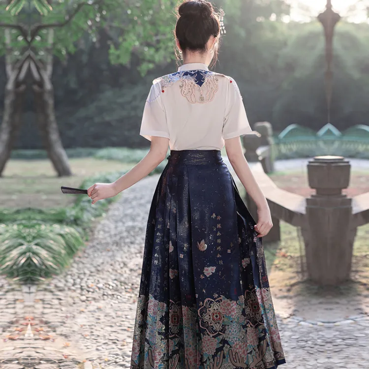 Комплект одежды (Белый топ + Синий низ)