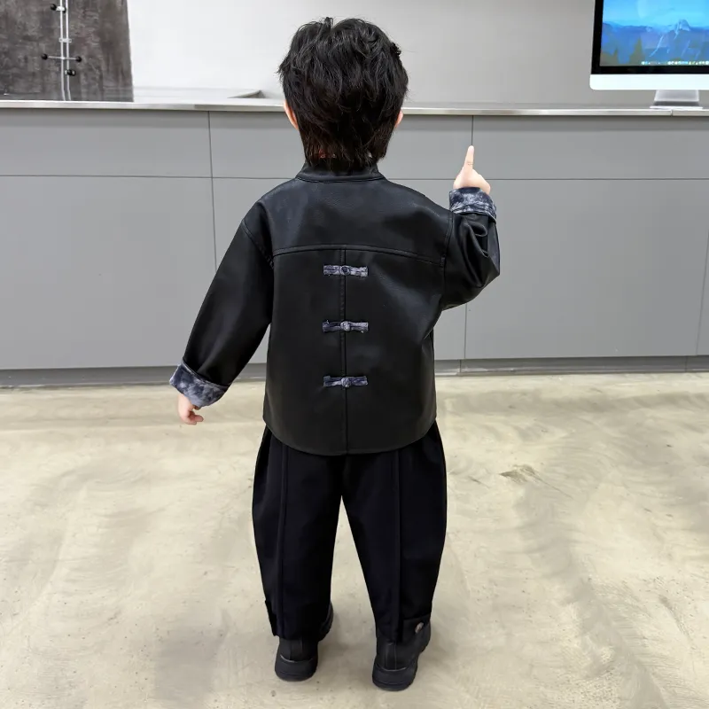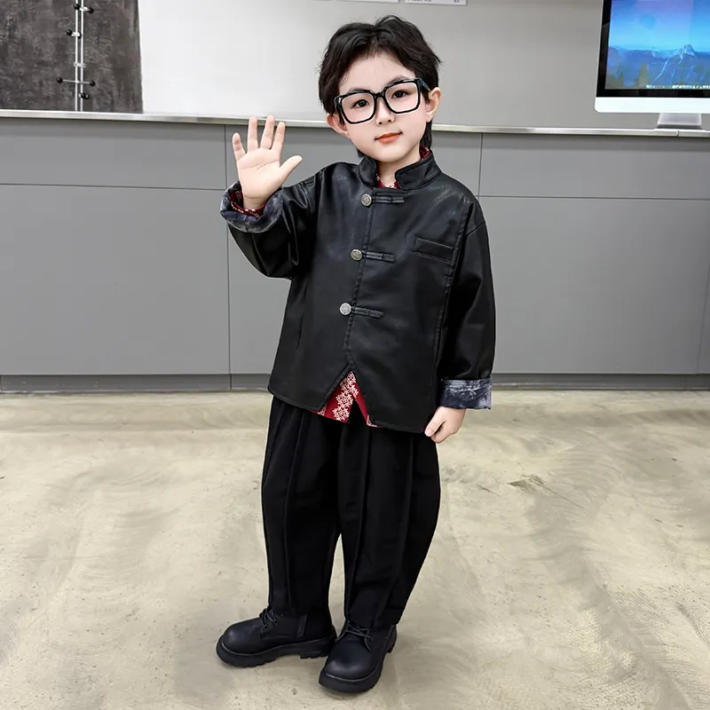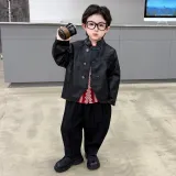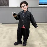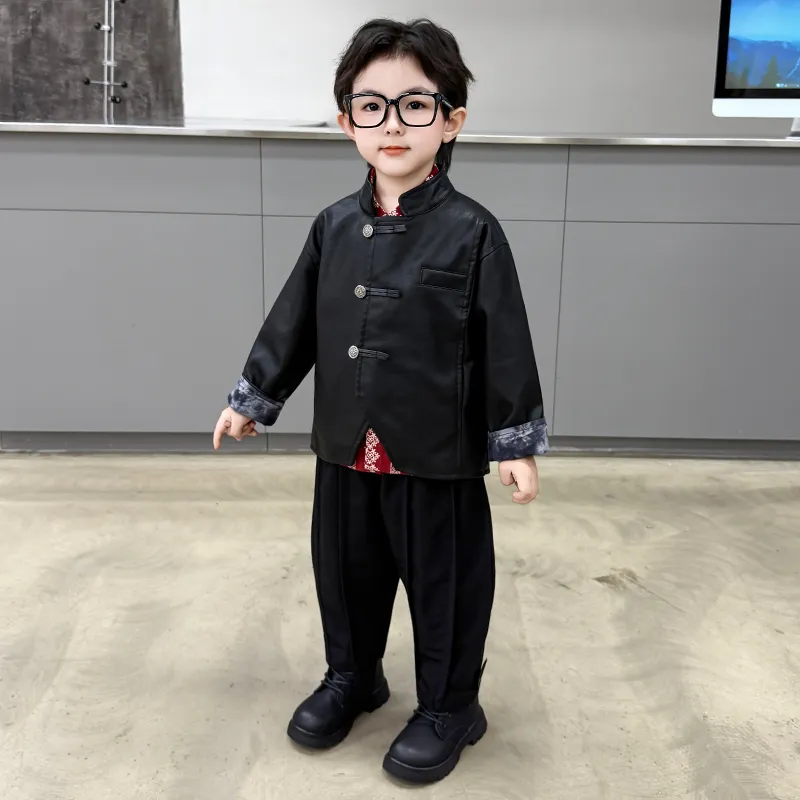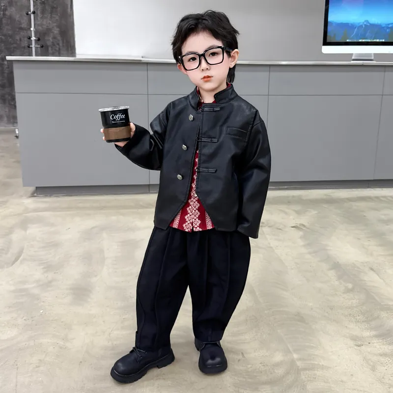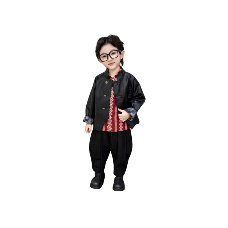 AIXINA Комплект одежды Черная кожа Куртка + Красная рубашка + Черные штаны Дошкольная Повседневная Спортивная одежда