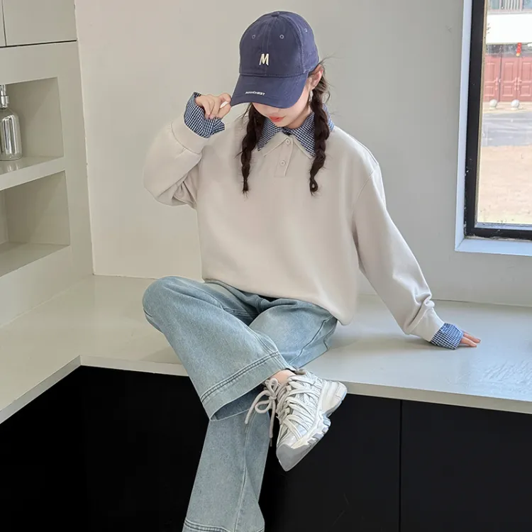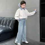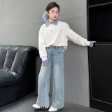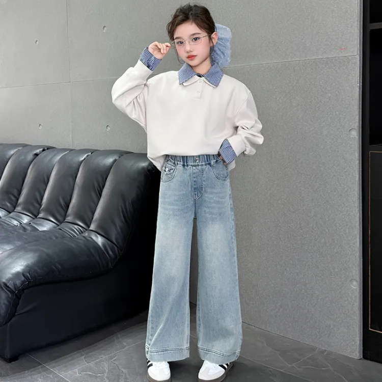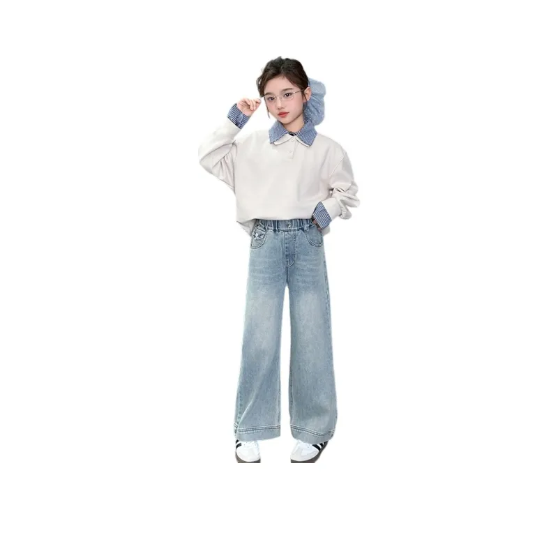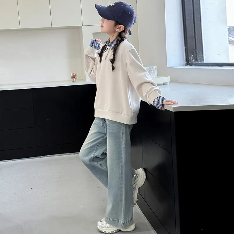 AIXINA Комплект одежды Бежевый Топ + Светло-Синий Низ Предшкольная Повседневная Спортивная одежда