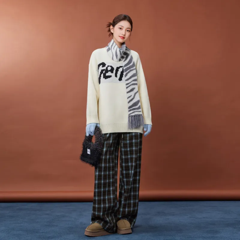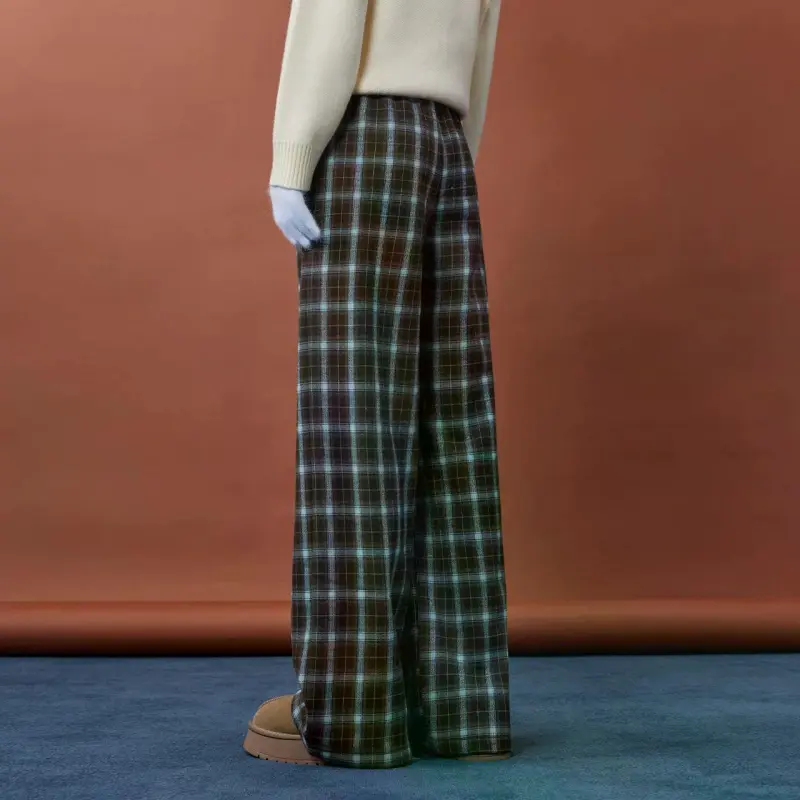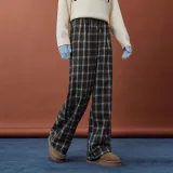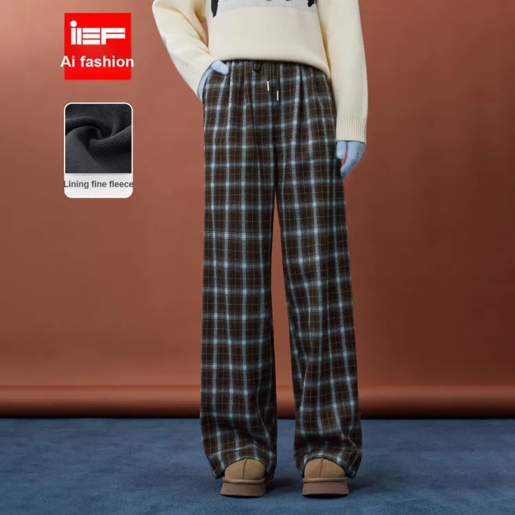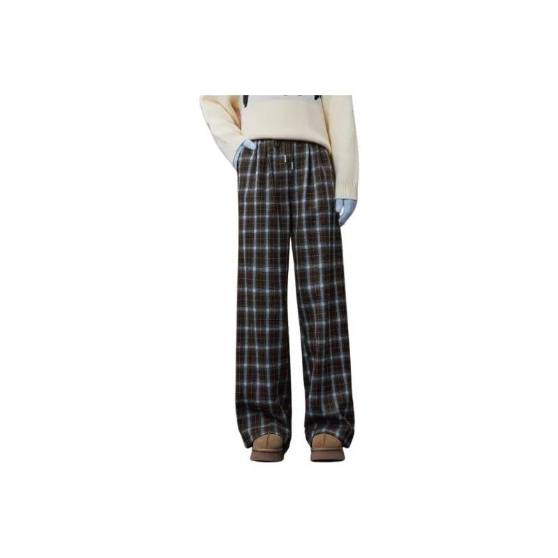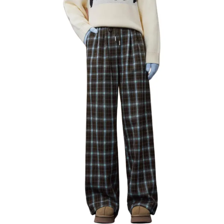 AIYIFU Blue Plaid Coffee Women's Casual Pants AIYIFU Синий Клетка Кофейный Женские Повседневные Брюки