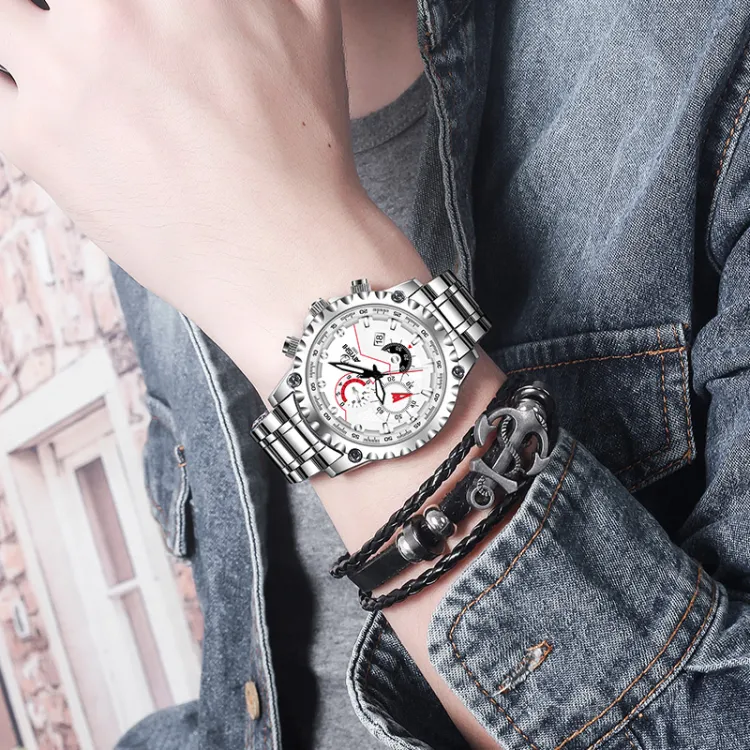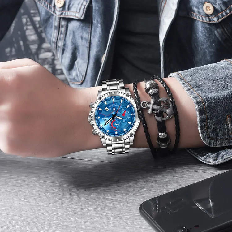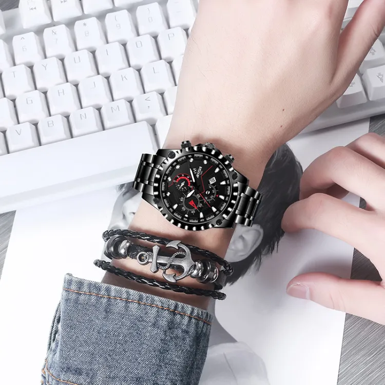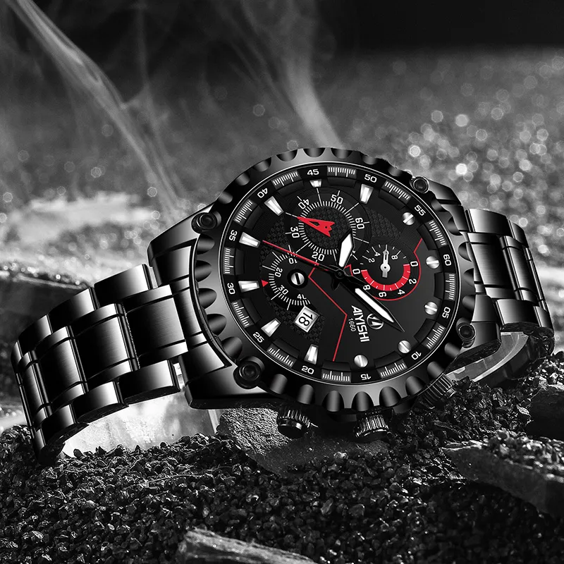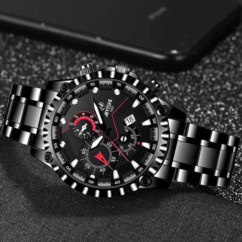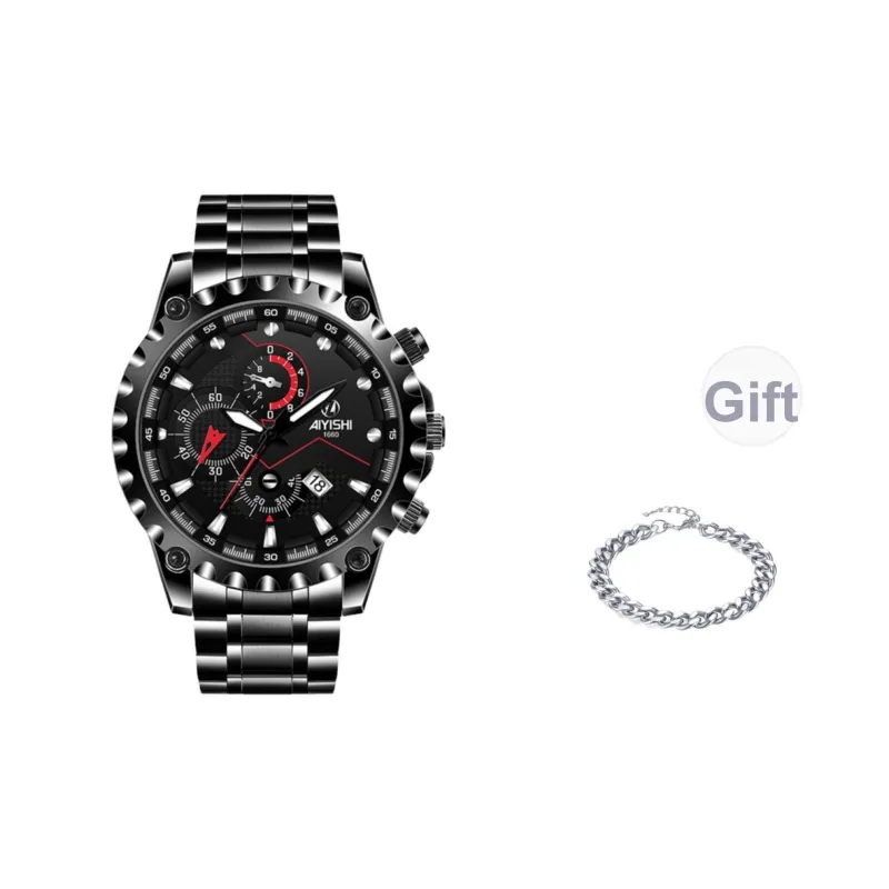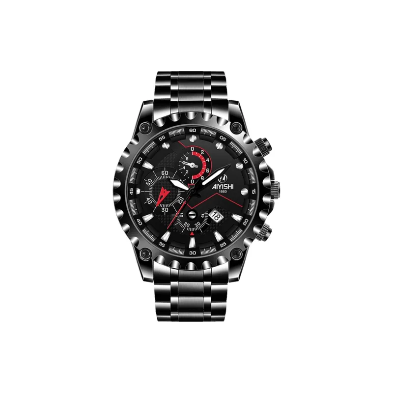 AIYISHI Кварцевый механизм Мужские часы 42 мм Черный