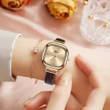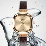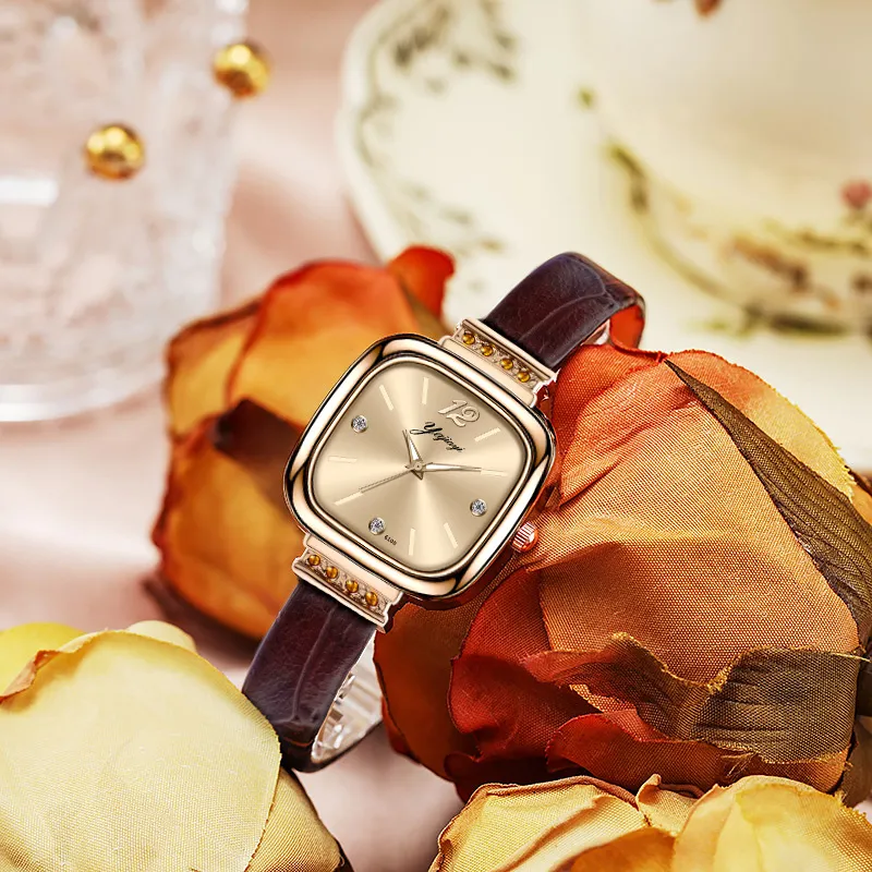 AIYISHI Кварцевый механизм ремень из натуральной кожи женские часы золотой циферблат модель AYS6100