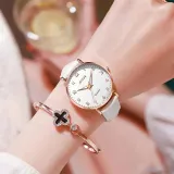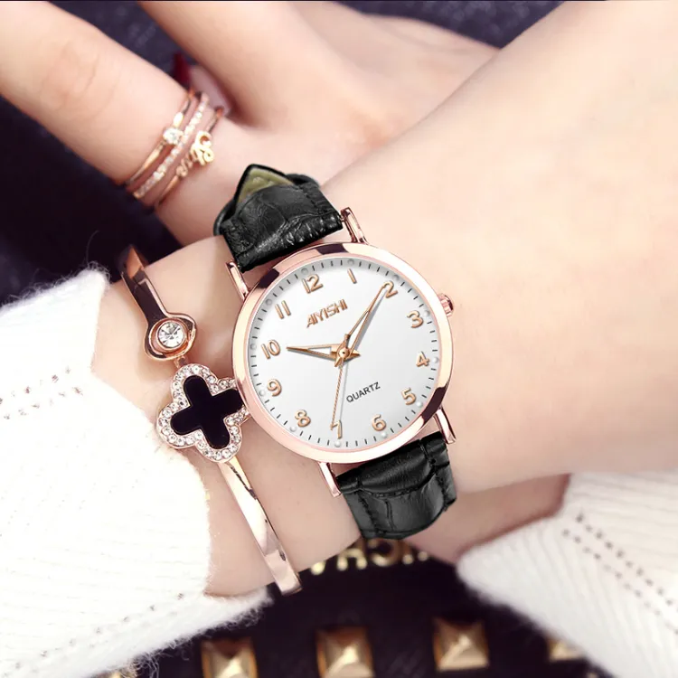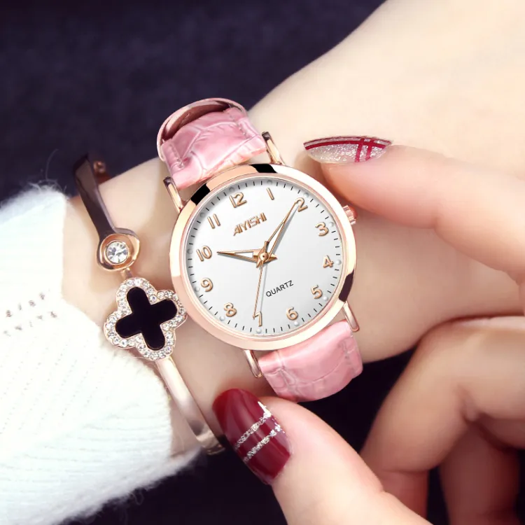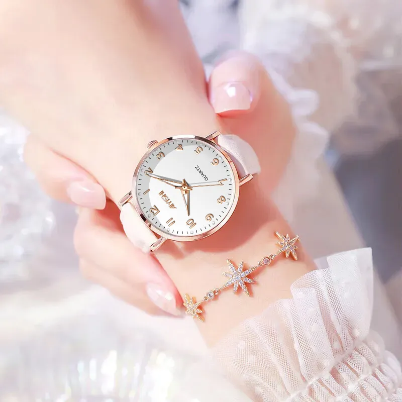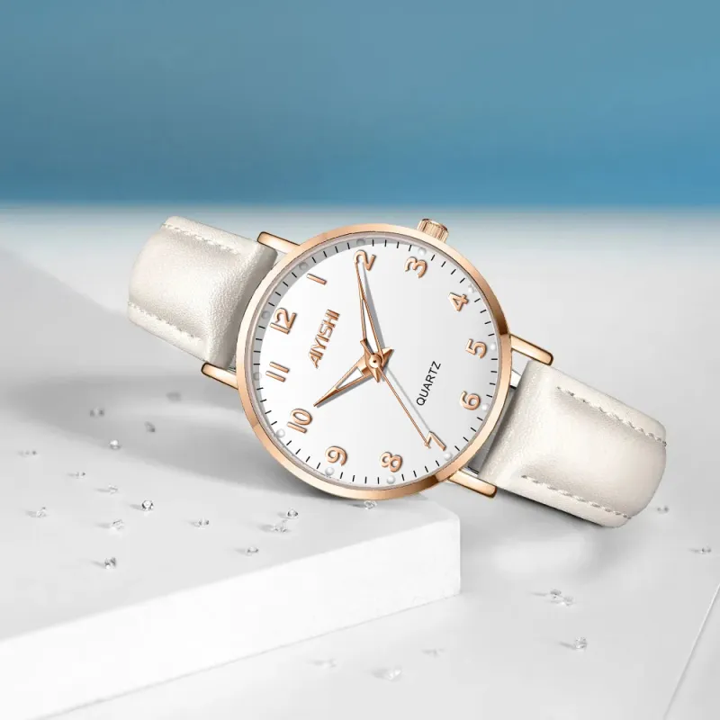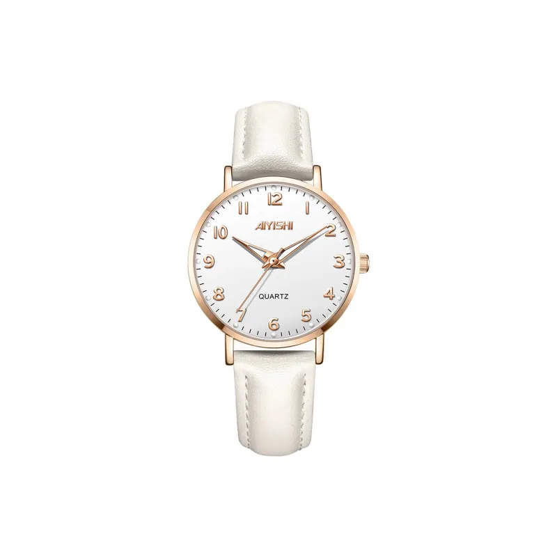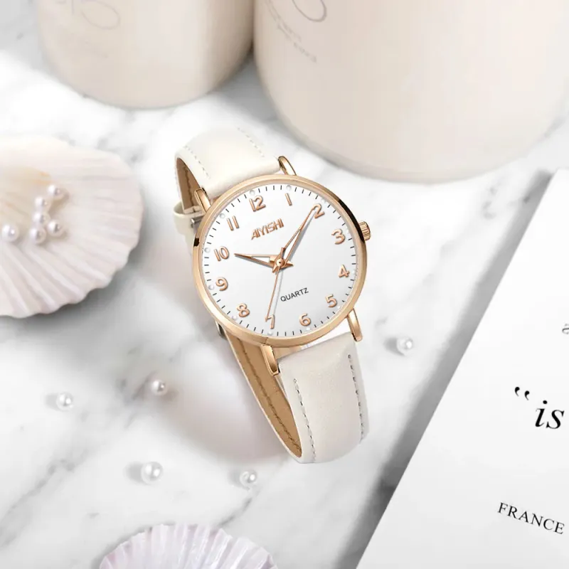 AIYISHI Кварцевый механизм ремень из натуральной кожи женские часы белый циферблат