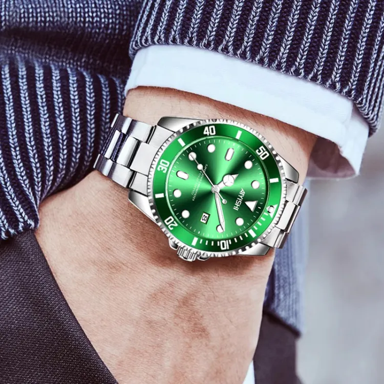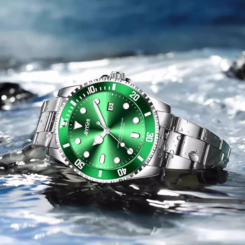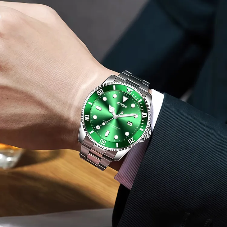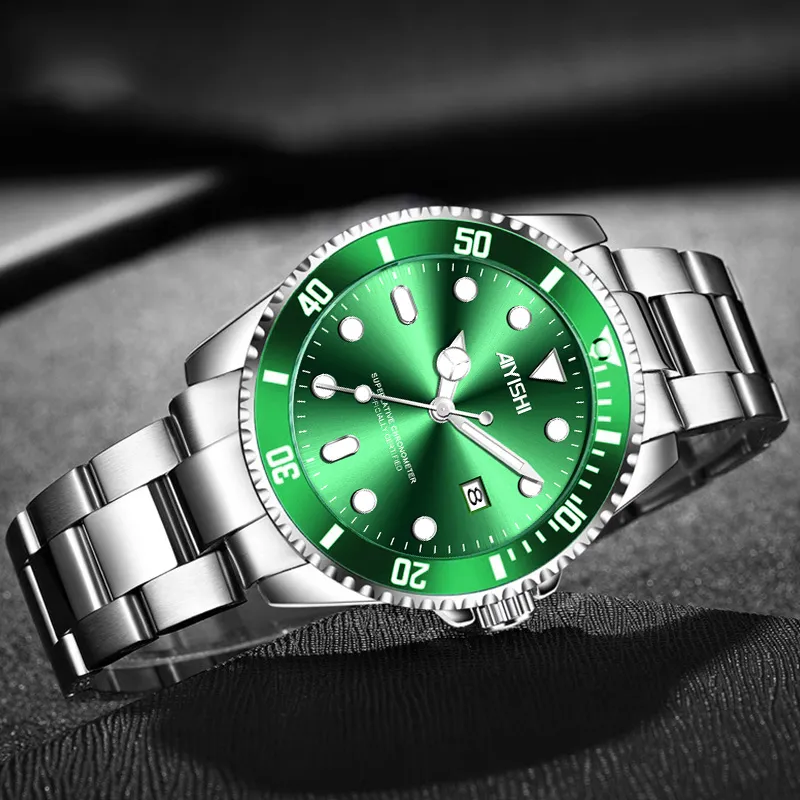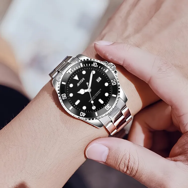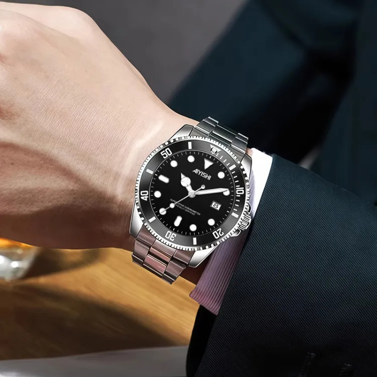 AIYISHI Кварцевый механизм металлический ремешок унисекс черный циферблат
