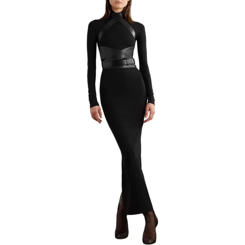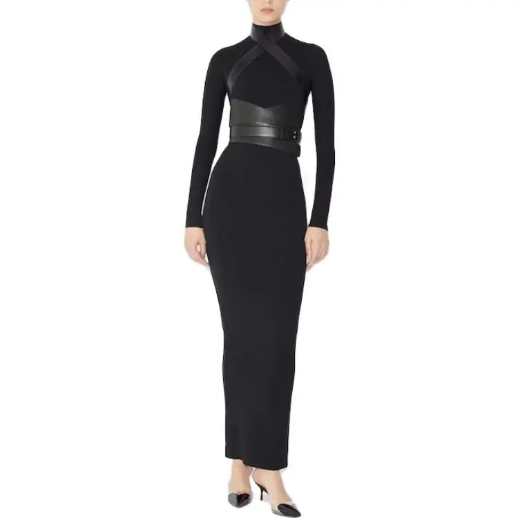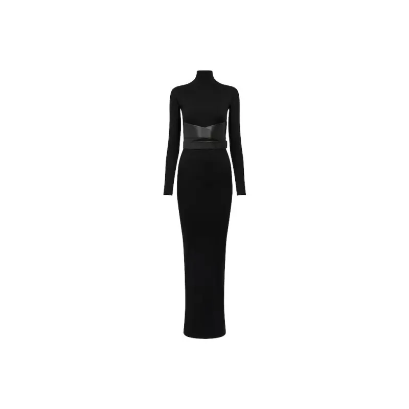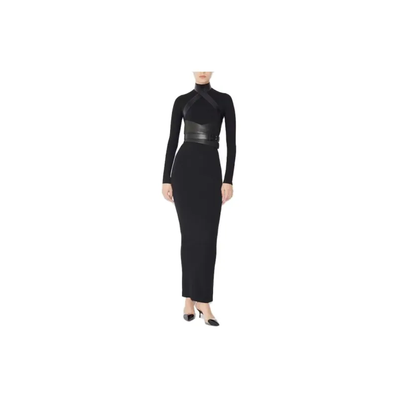 Alaia Длинное платье с длинными рукавами женское черное