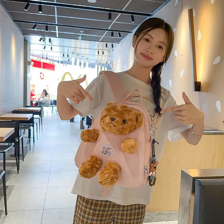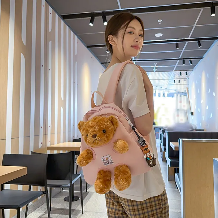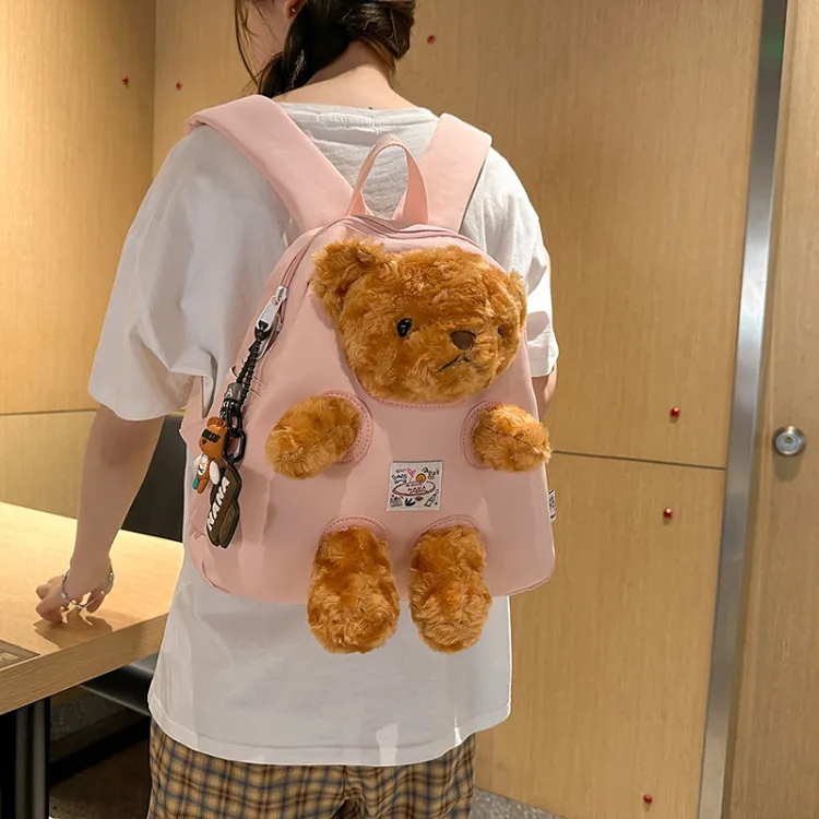 Розовый с лямкой, медведь, подвеска