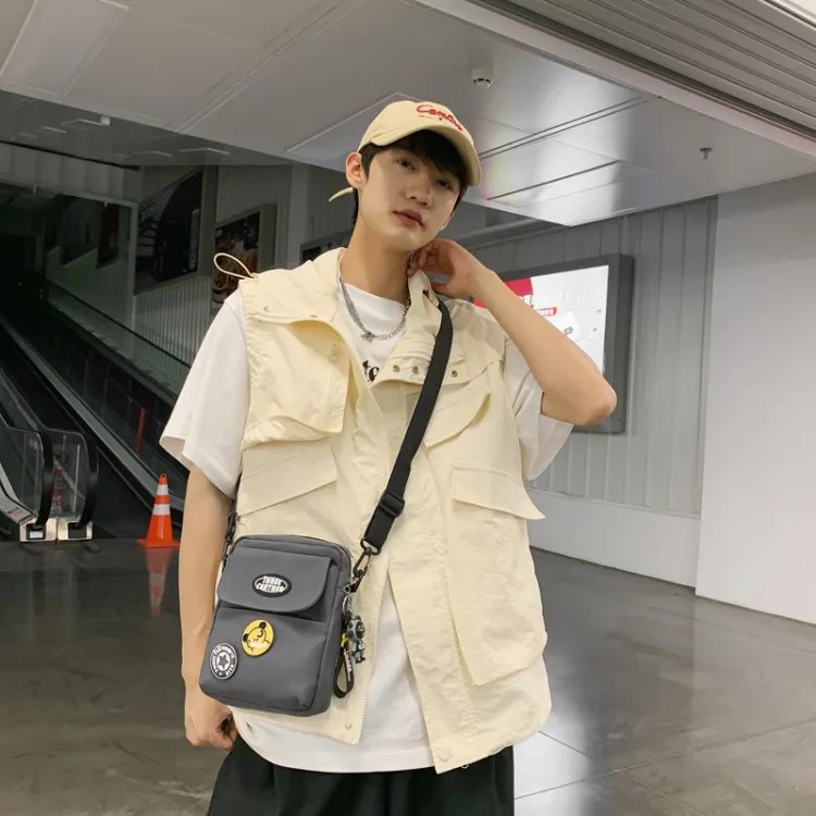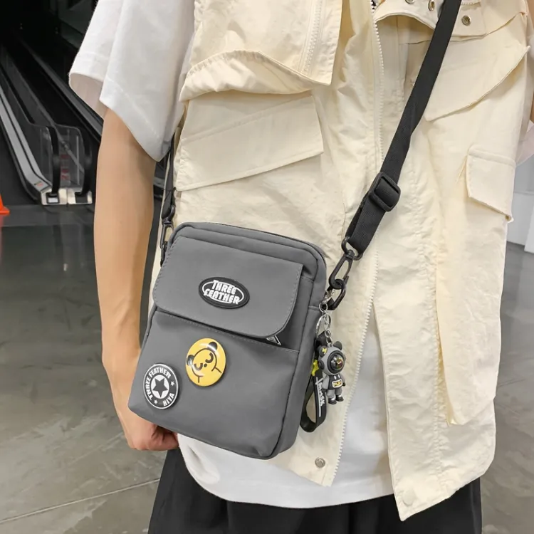 Серый с бейджом и подвеской
