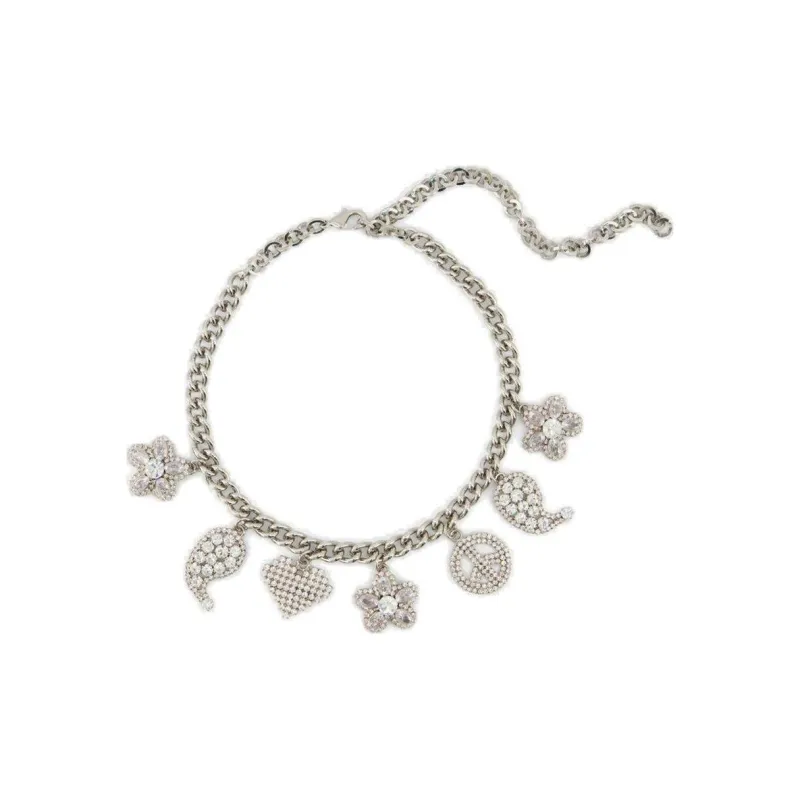 Alessandra Rich Латунь Стекло Ожерелья Женское Серебро