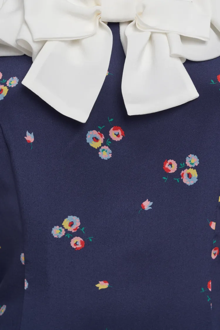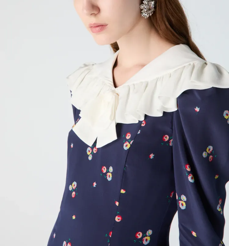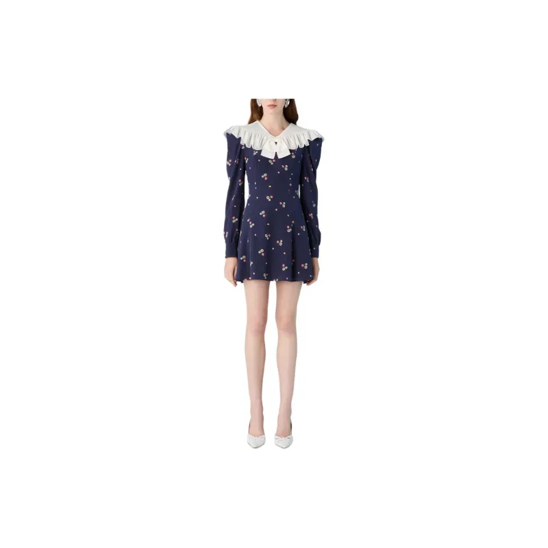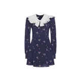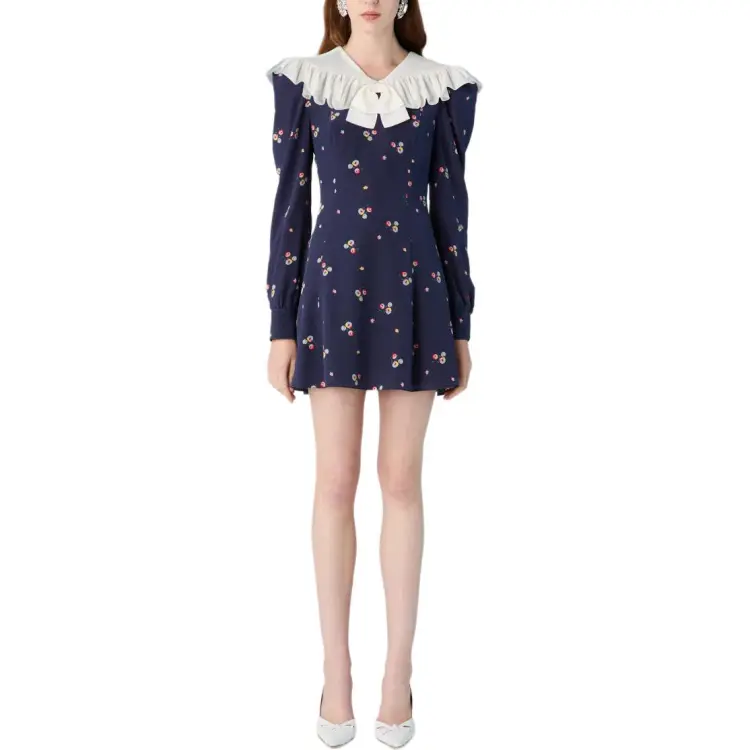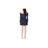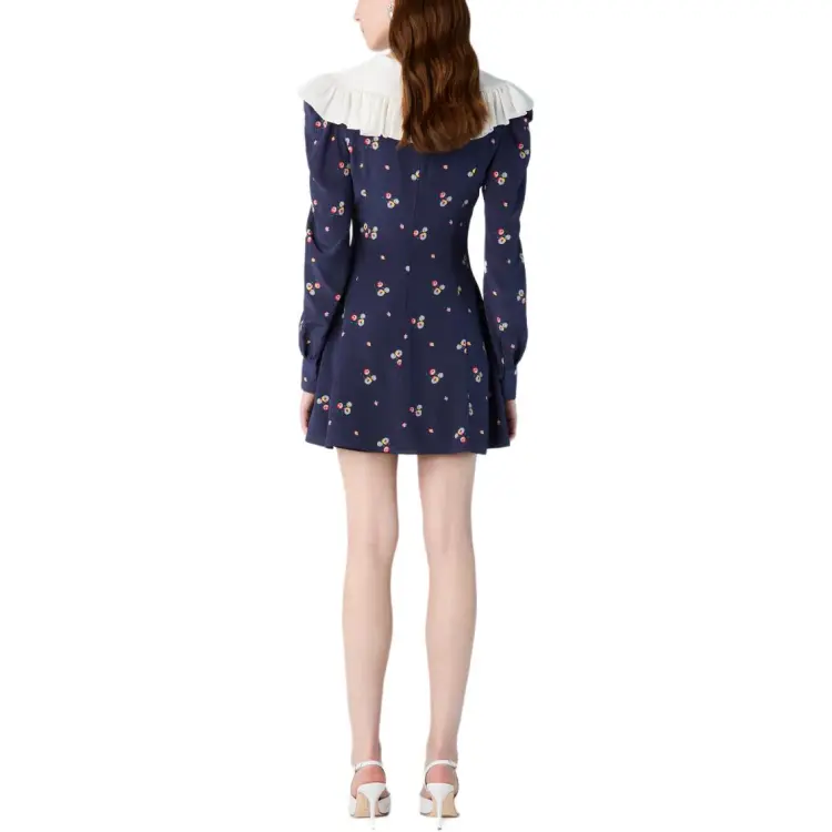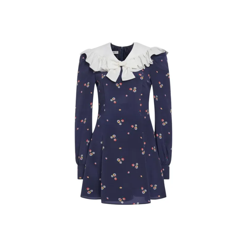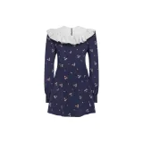 Alessandra Rich FW24 Длинное платье с длинными рукавами женское морской синий