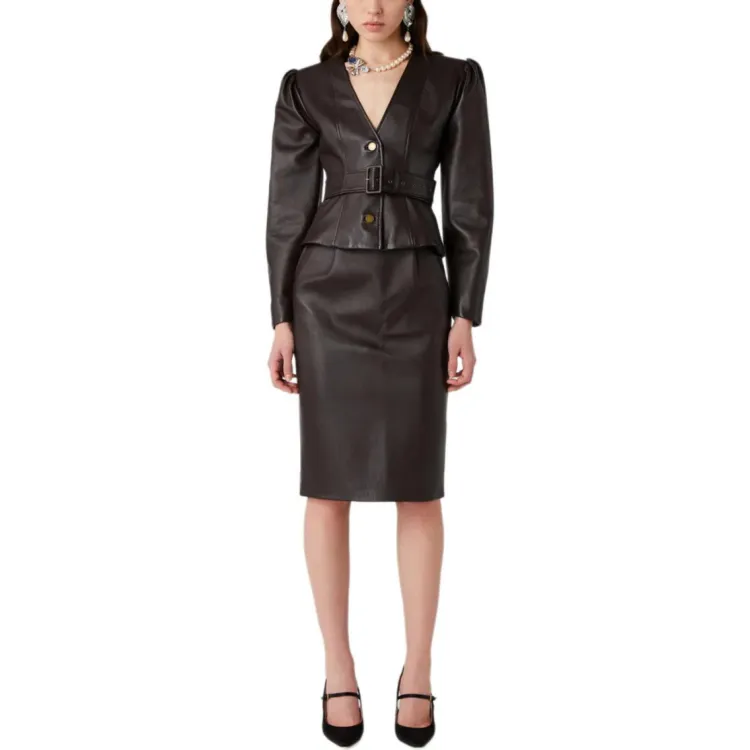 Alessandra Rich PF24 Кожа Длинная Юбка Женская Коричневая