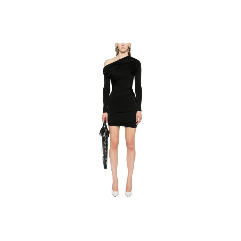 Alexander McQueen SS24 Длинное платье с длинными рукавами женское черное