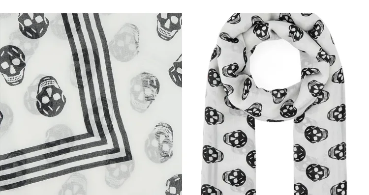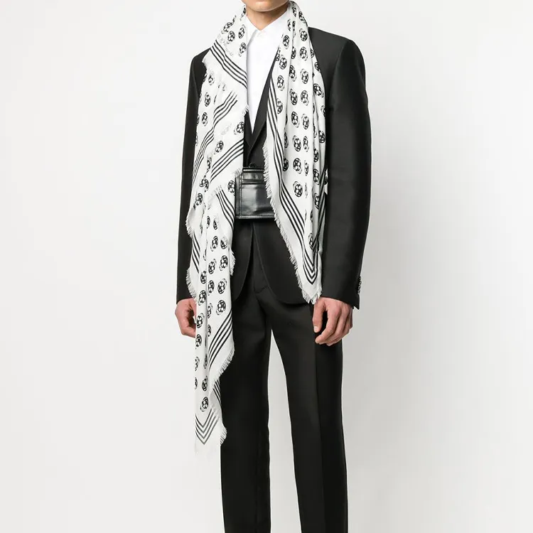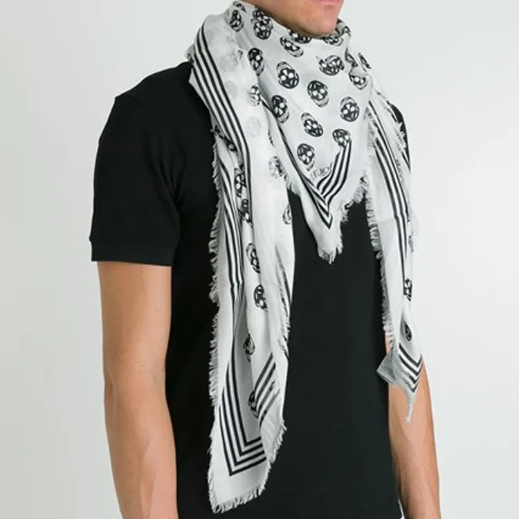 Alexander McQueen Модал Шелковые Шарфы Белый Черный Унисекс