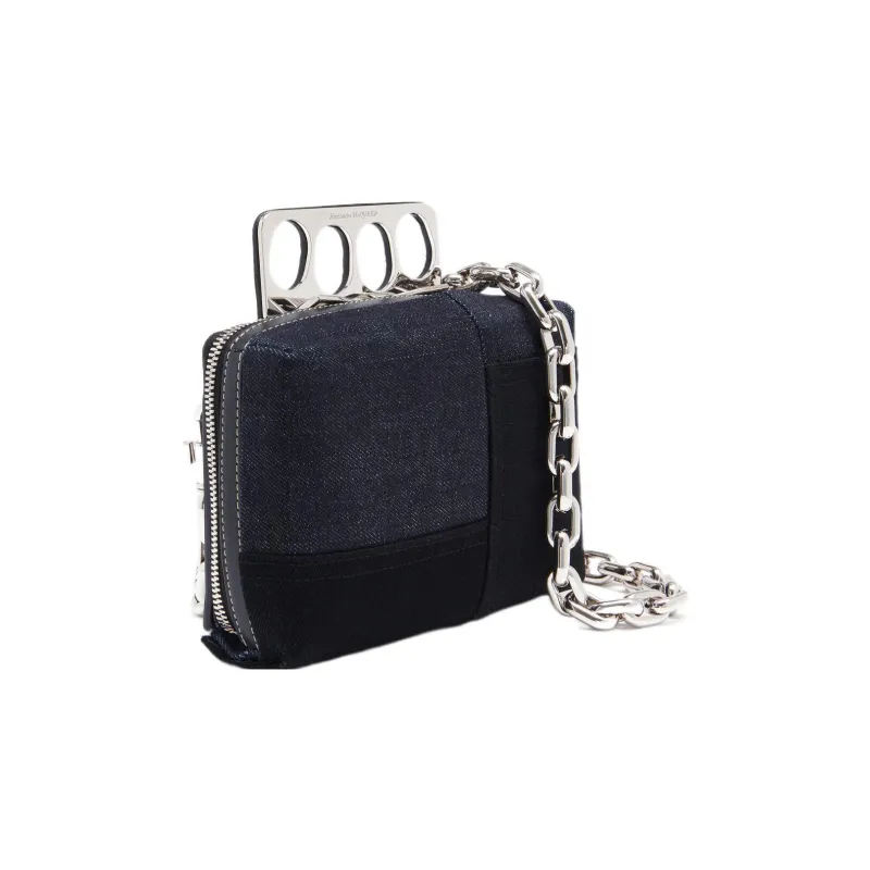 Alexander McQueen Гладкая коровья кожа Одно плечо Через плечо Клатч Мини Мужской Индиго Черный