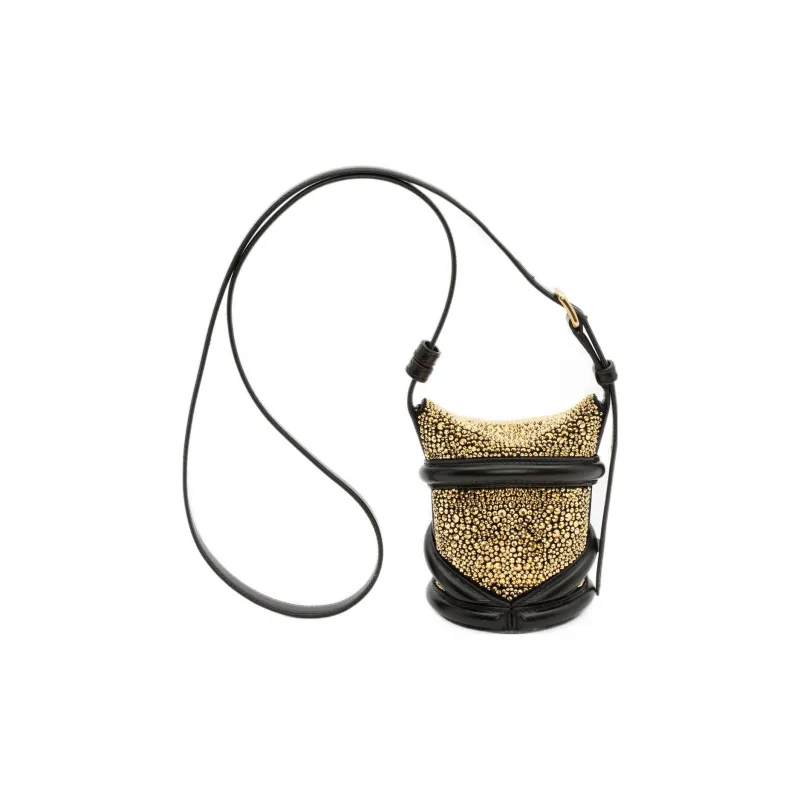 Alexander McQueen THE CURVE BAG Телячья кожа Сумка через плечо Мини Женская Черный Золото