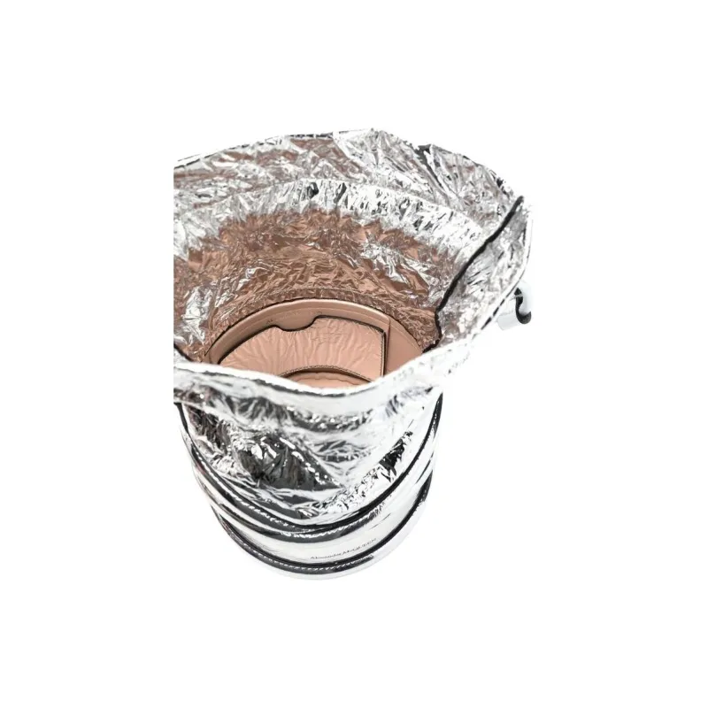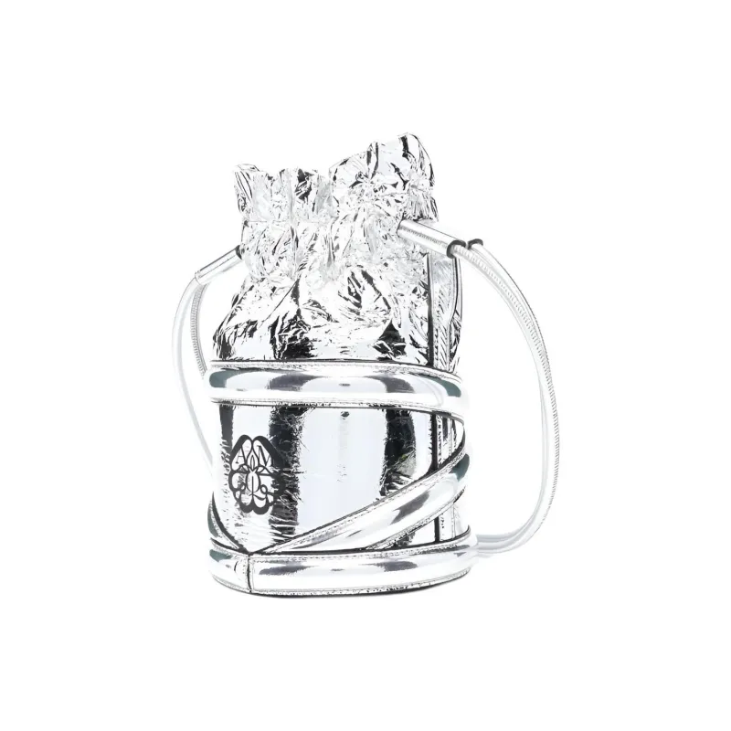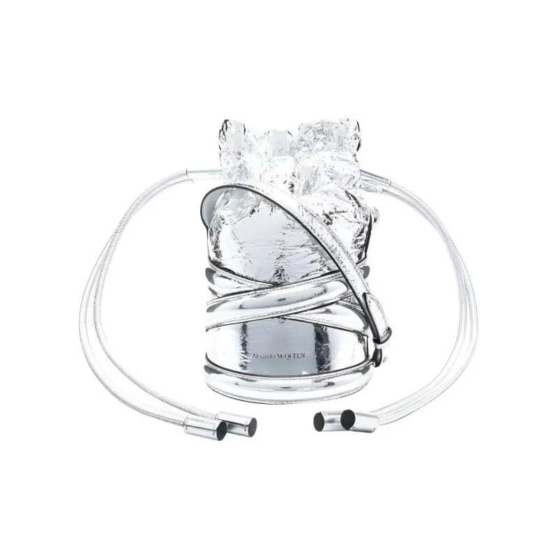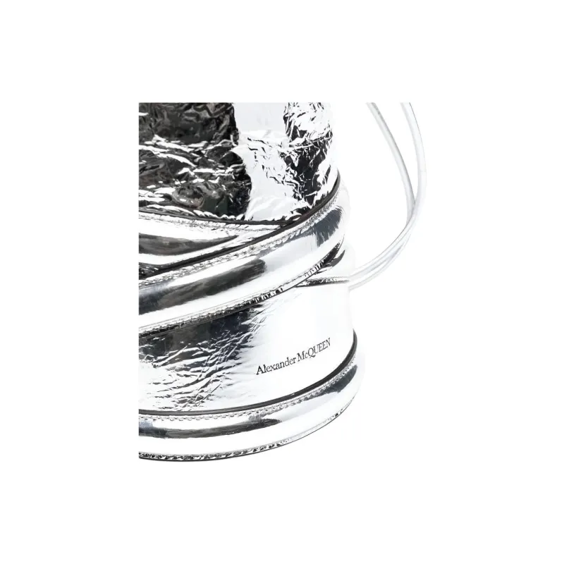 Alexander McQueen THE CURVE BAG Металл Effect Овечья шкура Ведрообразная сумка Сумка через плечо Женское серебро